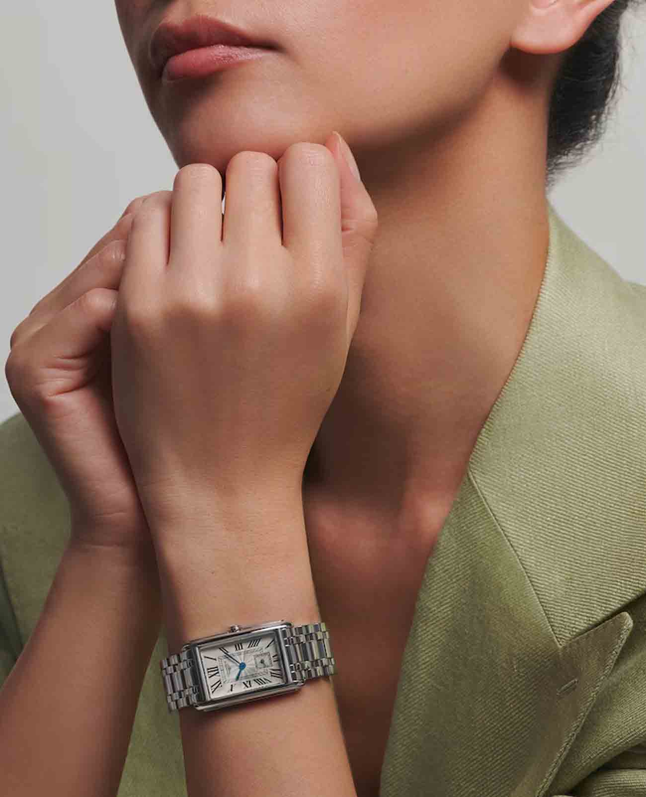 Женские швейцарские кварцевые часы с автоподзаводом из коллекции Longines DolceVita L5.512.4.71.6 воплощают в себе утончённую элегантность и чувство стиля. Циферблат этих часов защищён сапфировым стекломСапфировое стеклоПрочный и надёжный материал из кристалла сапфира синтетического происхождения, характеризующийся особой твёрдостью и устойчивостью к царапинам и повреждениям., которое устойчиво к появлению царапин и обладает высокой прозрачностью, что позволяет внимательно изучать каждый элемент циферблата.