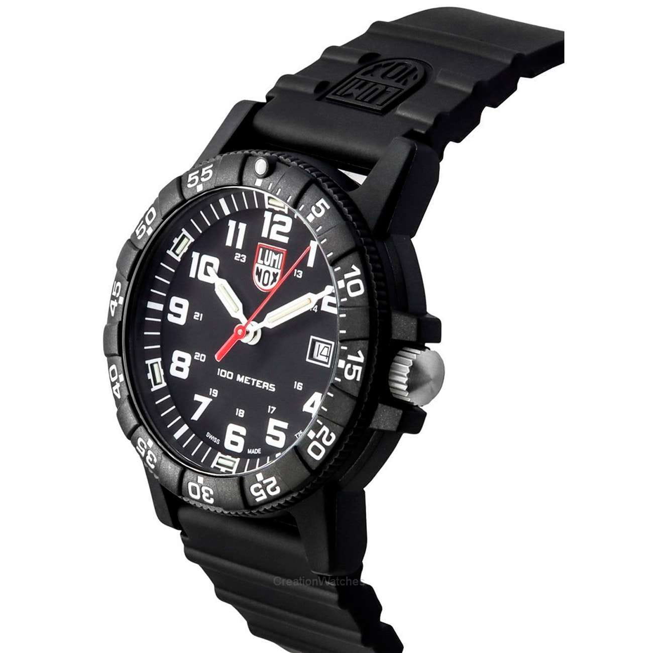 Мужские наручные часы Luminox XS.0321.L из коллекции Leatherback SEA Turtle Giant сочетают в себе спортивный дизайн и надежность швейцарского качества. Модель обладает круглым корпусом диаметром 44 мм, изготовленным из карбонаКарбонОт «carbon», «carbone» - углерод, углепластик - полимерный композиционный материал из переплетённых под определенным углом между собой нитей углеродного волокна, применяется для изготовления лёгких, но прочных деталей. В часах часто используют для украшения циферблатов и ремешков. Так же карбон используется в изготовлении корпусов. Такие корпуса обладают антикоррозионным свойством, не поддаются электромагнитному излучению, обладают повышенной прочностью и противоударностью. (CARBONOX™), что обеспечивает высокую устойчивость к внешним воздействиям при сохранении легкости. Циферблат черного цвета украшен контрастными метками и стрелками с , гарантирующим постоянную видимость времени даже в условиях низкой освещенности. Часы оснащены кварцевым механизмом швейцарского производства, обеспечивающим точность хода. Защиту циферблата обеспечивает прочное минеральное стеклоМинеральное стеклоМинеральное стекло представляет собой искусственно выращенный минерал кварца. Такое стекло отличается особой устойчивостью к повреждениям и царапинам. Уступает по некоторым качествам сапфировому стеклу., устойчивое к царапинам и механическим повреждениям . Водонепроницаемость модели достигает 10 атмосфер (100 метров), что делает их подходящими для плавания и активного отдыха на воде. Модель также оснащена безелемБезельВнешний ободок, закрепляющий стекло. В спортивных часах так называется поворотное кольцо с делениями на циферблате, выполняет роль таймера – замеряет отрезки времени на шкале. Неподвижный безель – элемент декора. Однонаправленно вращающийся безель на дайверских часах позволяет фиксировать моменты погружения и выныривания на поверхность. с односторонним вращением, что добавляет функциональности при использовании в водных условиях. Ремешок выполнен из черного силикона, что обеспечивает комфортное ношение в течение дня. Дополнительно часы имеют окно даты в положении «3 часа», что делает их практичными для повседневного использования.