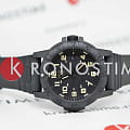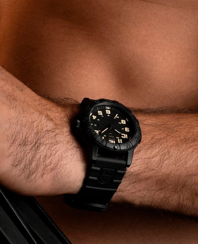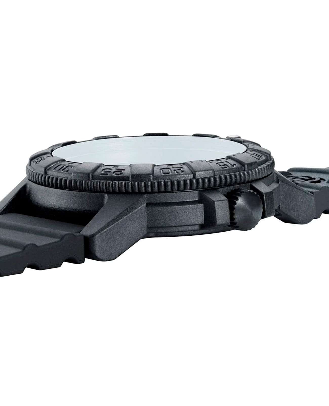 Мужские наручные часы Luminox XS.0330 из коллекции Leatherback SEA Turtle Giant сочетают в себе спортивный дизайн и надежность швейцарского качества. Модель обладает круглым корпусом диаметром 44 мм, изготовленным из карбонаКарбонОт «carbon», «carbone» - углерод, углепластик - полимерный композиционный материал из переплетённых под определенным углом между собой нитей углеродного волокна, применяется для изготовления лёгких, но прочных деталей. В часах часто используют для украшения циферблатов и ремешков. Так же карбон используется в изготовлении корпусов. Такие корпуса обладают антикоррозионным свойством, не поддаются электромагнитному излучению, обладают повышенной прочностью и противоударностью. (CARBONOX™), что обеспечивает высокую устойчивость к внешним воздействиям при сохранении легкости. Циферблат черного цвета украшен контрастными метками и стрелками с , гарантирующим постоянную видимость времени даже в условиях низкой освещенности. Часы оснащены кварцевым механизмом Ronda 515 швейцарского производства, обеспечивающим точность хода ±15 секунд в месяц. Защиту циферблата обеспечивает прочное минеральное стеклоМинеральное стеклоМинеральное стекло представляет собой искусственно выращенный минерал кварца. Такое стекло отличается особой устойчивостью к повреждениям и царапинам. Уступает по некоторым качествам сапфировому стеклу., устойчивое к царапинам и механическим повреждениям. Водонепроницаемость модели достигает 10 атмосфер (100 метров), что делает их подходящими для плавания и активного отдыха на воде. Модель также оснащена безелемБезельВнешний ободок, закрепляющий стекло. В спортивных часах так называется поворотное кольцо с делениями на циферблате, выполняет роль таймера – замеряет отрезки времени на шкале. Неподвижный безель – элемент декора. Однонаправленно вращающийся безель на дайверских часах позволяет фиксировать моменты погружения и выныривания на поверхность. с односторонним вращением, что добавляет функциональности при использовании в водных условиях . Ремешок выполнен из черного каучука, что обеспечивает комфортное ношение в течение дня. Дополнительно часы имеют окно даты в положении «3 часа», что делает их практичными для повседневного использования.
