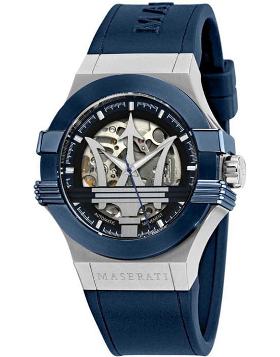 Мужские механические часы-скелетоны Maserati AQUA EDITION R8821108035, механический механизм (автоматический калибр) с высокой точностью. Класс водозащиты: 100 метров, позволит плавать, нырять и заниматься другими водными видами спорта. Корпус часов изготовлен из стали, цвета.