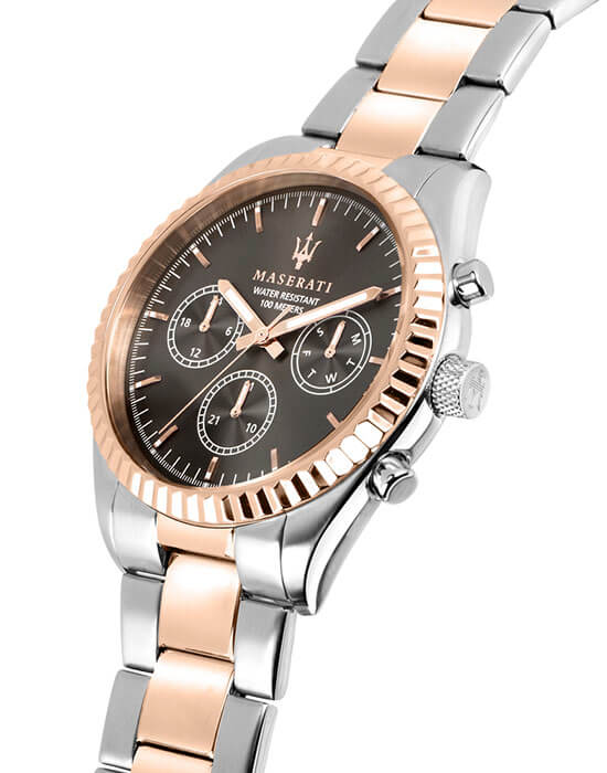 Мужские часы с хронографом Maserati COMPETIZIONE R8853100020, кварцевый механизм с высокой точностью. Класс водозащиты: 100 метров, позволит плавать, нырять и заниматься другими водными видами спорта. Корпус часов изготовлен из стали, разноцветного цвета.