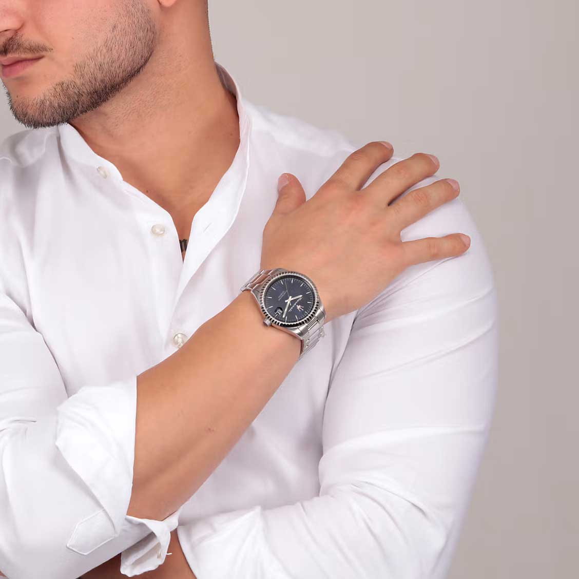 Механические часы Maserati R8853100029 представляют собой элегантное сочетание итальянской эстетики и технического совершенства. Корпус из нержавеющей стали диаметром 43 мм подчеркивает современный стиль. Минеральное стеклоМинеральное стеклоМинеральное стекло представляет собой искусственно выращенный минерал кварца. Такое стекло отличается особой устойчивостью к повреждениям и царапинам. Уступает по некоторым качествам сапфировому стеклу. защищает циферблат. Стальной браслет на раскладной застёжкеРаскладная застёжкаТакой тип застёжки используется только на браслетах из металла. Она никогда не раскрывается полностью, происходит разделение на 2 и более частей. Раскладывающая застёжка снизит вероятность потери часов к минимуму. с системой блокировки не только обеспечивает комфортное ношение, но и придаёт аксессуару дополнительную элегантность, подчёркивая его современный стиль. Метки в виде штрихов. Окошко даты с увеличительным стеклом находится в положении 3 часа. Граненый безель. Завинчивающаяся задняя крышка и заводная головка. Браслет с раскладывающейся застежкой.