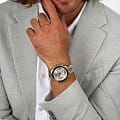Часы Maserati Sfida R8873640024 представляют собой воплощение итальянской элегантности и технологической точности. Эти часы-хронографХронографФункция позволяет измерять отрезки времени с особой точностью: часы, минуты, секунды. Верным признаком хронографа является наличие на циферблате 3 дополнительных окошек-счётчиков. оборудованы надёжным кварцевым механизмом с калибром Miyota JS25, обеспечивающим точность и долговечность. Корпус диаметром 44 мм выполнен из стали и украшен керамической вставкой, что придаёт им современный и стильный вид. Серебристый циферблат, выполненный по технологии Sunray, эффектно играет на свету, создавая впечатление солнечных лучей. Он украшен фирменным логотипом «Maserati» и метками в виде штрихов, а также содержит окошко даты, расположенное между отметками 4 и 5 часов. Функциональность часов подчёркнута наличием секундомераСекундомерСекундоме́р — прибор, способный измерять интервалы времени с точностью до долей секунды. и возможностью выбора 12-ти или 24-х часового формата времени. БезельБезельВнешний ободок, закрепляющий стекло. В спортивных часах так называется поворотное кольцо с делениями на циферблате, выполняет роль таймера – замеряет отрезки времени на шкале. Неподвижный безель – элемент декора. Однонаправленно вращающийся безель на дайверских часах позволяет фиксировать моменты погружения и выныривания на поверхность. с золотистым и черным PVDPVDУльтратонкое покрытие наносится в технике вакуумного напыления, сочетает в себе нитрид титана особой прочности со слоем золота или оксида хрома. Несёт в себе декоративную или защитную функцию. покрытием имеет шкалу тахиметраТахиметрРазмеченная шкала, располагается на ободке или безеле часов. Тахиметр позволяет рассчитать скорость на определённом участке пути, расстояние измеряется в километрах или милях.. Люминесцентное покрытиеЛюминесцентное покрытиеПозволяет считывать показания времени в темноте. Производители наносят на стрелки, часовые индексы, безель или поверхность циферблата светонакопительный состав, дающий холодное свечение. на стрелках обеспечивает отличную видимость в темноте. Минеральное стеклоМинеральное стеклоМинеральное стекло представляет собой искусственно выращенный минерал кварца. Такое стекло отличается особой устойчивостью к повреждениям и царапинам. Уступает по некоторым качествам сапфировому стеклу. защищает циферблат, а завинчивающаяся задняя крышка и заводная головка с защитой гарантируют водозащиту до 100WR, позволяя без опасений использовать часы в различных условиях. Стальной браслет с частичным PVDPVDУльтратонкое покрытие наносится в технике вакуумного напыления, сочетает в себе нитрид титана особой прочности со слоем золота или оксида хрома. Несёт в себе декоративную или защитную функцию. покрытием и раскладной застёжкойРаскладная застёжкаТакой тип застёжки используется только на браслетах из металла. Она никогда не раскрывается полностью, происходит разделение на 2 и более частей. Раскладывающая застёжка снизит вероятность потери часов к минимуму. обеспечивает комфортное ношение и надёжную фиксацию на запястье. Эти часы идеально подойдут для тех, кто ценит стиль и функциональность в одном аксессуаре.