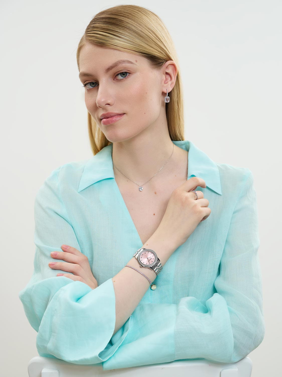 Женские кварцевые часы Mathey-Tissot Artemis D10860AQPK — это стильное сочетание элегантности и современного дизайна. Изящный корпус выполнен из стали 316L с безелемБезельВнешний ободок, закрепляющий стекло. В спортивных часах так называется поворотное кольцо с делениями на циферблате, выполняет роль таймера – замеряет отрезки времени на шкале. Неподвижный безель – элемент декора. Однонаправленно вращающийся безель на дайверских часах позволяет фиксировать моменты погружения и выныривания на поверхность., украшенным кристаллами, что придаст образу женственности и романтизма. Изысканный циферблат с метками в виде штрихов придает модели особый блеск и защищен минеральным стекломМинеральное стеклоМинеральное стекло представляет собой искусственно выращенный минерал кварца. Такое стекло отличается особой устойчивостью к повреждениям и царапинам. Уступает по некоторым качествам сапфировому стеклу., обеспечивающим устойчивость к царапинам. Центральные часовая, минутная стрелки. Часы оснащены надежным кварцевым механизмом. Стальной браслет на застёжке-бабочке с кнопкамиЗастёжка "бабочка"Такой вид застёжки дополняется предохранителями, помогающими избежать случайного раскрытия браслета. Обладают изящным исполнением. , гарантирующего комфортное и безопасное ношение. Класс водозащиты: 50 метров позволит защитить корпус от случайных брызг или капель дождя. Mathey-Tissot  — отличный выбор для тех, кто ценит утонченность и качество.