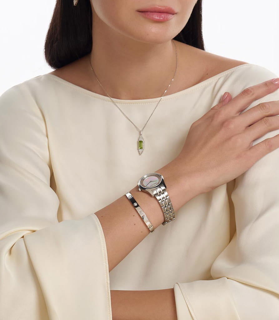 Женские кварцевые часы Mathey-Tissot Tacy D949AI— это стильное сочетание элегантности и современного дизайна. Изящный корпус выполнен из стали 316L  и прекрасно впишется в ваш исключительный стиль. Изысканный циферблат с метками придает модели особый блеск и защищен минеральным стекломМинеральное стеклоМинеральное стекло представляет собой искусственно выращенный минерал кварца. Такое стекло отличается особой устойчивостью к повреждениям и царапинам. Уступает по некоторым качествам сапфировому стеклу., обеспечивающим устойчивость к царапинам. Перламутровый циферблат. Заостренные прямоугольные стрелки в стиле Baton. Часы оснащены надежным кварцевым механизмом. Стальной браслет на раскладной застёжкеРаскладная застёжкаТакой тип застёжки используется только на браслетах из металла. Она никогда не раскрывается полностью, происходит разделение на 2 и более частей. Раскладывающая застёжка снизит вероятность потери часов к минимуму. гарантирует комфортное и безопасное ношение. Класс водозащиты: 50 метров позволит защитить корпус от случайных брызг или капель дождя. Mathey-Tissot  — отличный выбор для тех, кто ценит утонченность и качество.