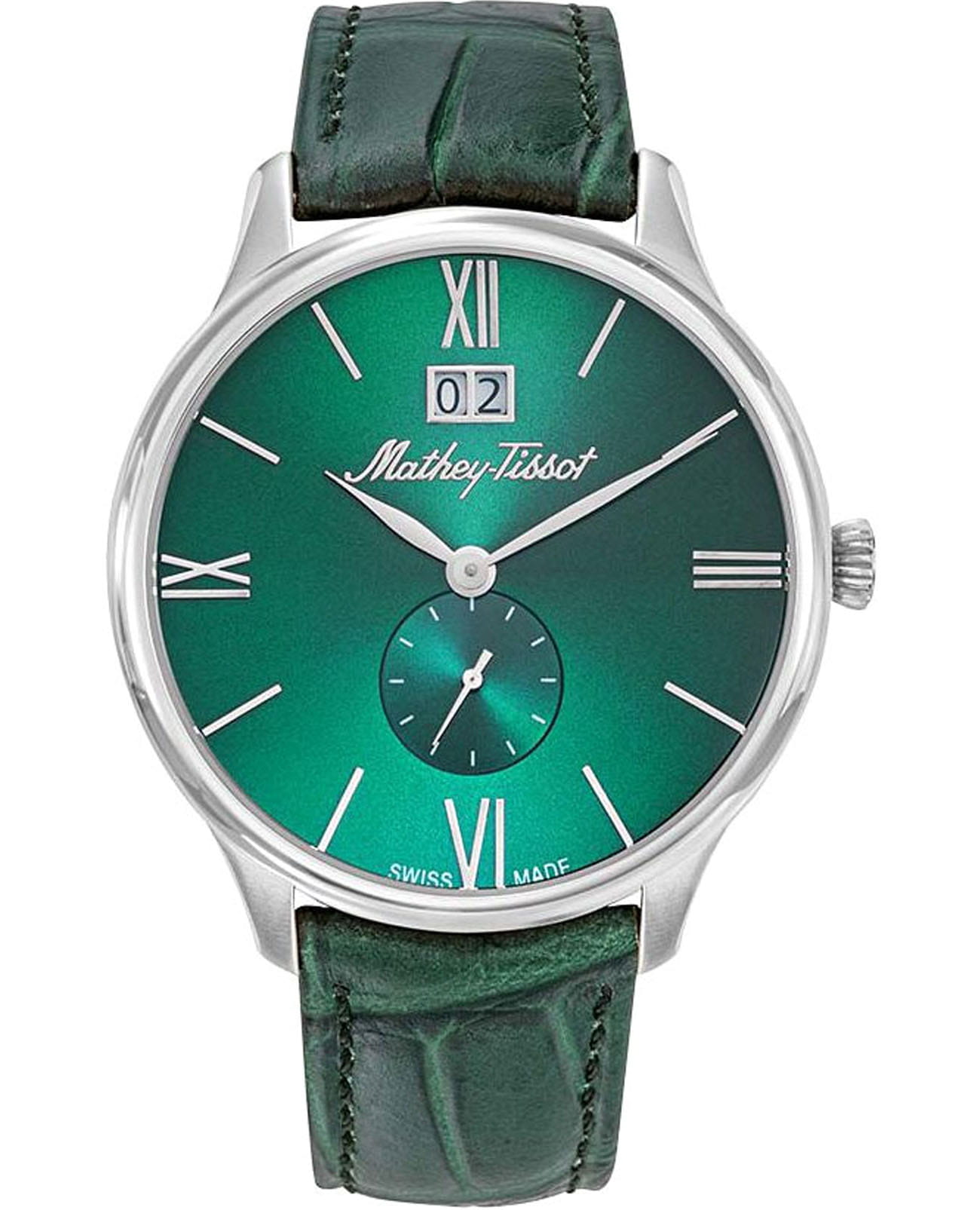 Мужские кварцевые часы Mathey-Tissot Edmond H1886QAV — это стильное сочетание элегантности и современного дизайна. Изящный корпус выполнен из нержавеющей стали, диаметром 42 мм, что придаст образу элегантности и надежности. Изысканный циферблат с метками в виде штрихов и римских цифр придает модели особый блеск. Циферблат защищен минеральным стекломМинеральное стеклоМинеральное стекло представляет собой искусственно выращенный минерал кварца. Такое стекло отличается особой устойчивостью к повреждениям и царапинам. Уступает по некоторым качествам сапфировому стеклу. с сапфировым покрытием, обеспечивает устойчивость к царапинам. Окошко даты находится в положении 12 часов. Кожаный ремешок на застёжке-бабочке с кнопкамиЗастёжка "бабочка"Такой вид застёжки дополняется предохранителями, помогающими избежать случайного раскрытия браслета. Обладают изящным исполнением. , гарантирует комфортное и безопасное ношение. Секундная стрелка вынесена на отдельный циферблат. Рифленая заводная головка. Класс водозащиты: 50 метров позволит защитить корпус от случайных брызг или капель дождя. Mathey-Tissot  — отличный выбор для тех, кто ценит утонченность и качество.