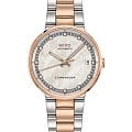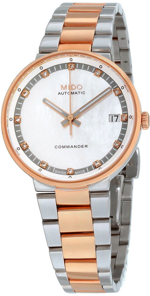 Практичные и многофункциональные часы, великолепно сидящие на руке. Женские наручные часы. Круглый стальной корпус. Циферблат с люминесцентным покрытиемЛюминесцентное покрытиеПозволяет считывать показания времени в темноте. Производители наносят на стрелки, часовые индексы, безель или поверхность циферблата светонакопительный состав, дающий холодное свечение. стрелок дополнен сапфировым стекломСапфировое стеклоПрочный и надёжный материал из кристалла сапфира синтетического происхождения, характеризующийся особой твёрдостью и устойчивостью к царапинам и повреждениям., устойчивым к появлению царапин и обладающее высокой прозрачностью. Запас хода 40 часа. Циферблат украшен 12 бриллиантами. Окошко даты в положении 3 часа. Рифленая заводная головка. Стальной браслет с частичным PVD-покрытиемPVDУльтратонкое покрытие наносится в технике вакуумного напыления, сочетает в себе нитрид титана особой прочности со слоем золота или оксида хрома. Несёт в себе декоративную или защитную функцию. и с застёжкой «бабочка» с кнопкамиЗастёжка "бабочка"Такой вид застёжки дополняется предохранителями, помогающими избежать случайного раскрытия браслета. Обладают изящным исполнением. . БезельБезельВнешний ободок, закрепляющий стекло. В спортивных часах так называется поворотное кольцо с делениями на циферблате, выполняет роль таймера – замеряет отрезки времени на шкале. Неподвижный безель – элемент декора. Однонаправленно вращающийся безель на дайверских часах позволяет фиксировать моменты погружения и выныривания на поверхность. с PVD-покрытиемPVDУльтратонкое покрытие наносится в технике вакуумного напыления, сочетает в себе нитрид титана особой прочности со слоем золота или оксида хрома. Несёт в себе декоративную или защитную функцию..