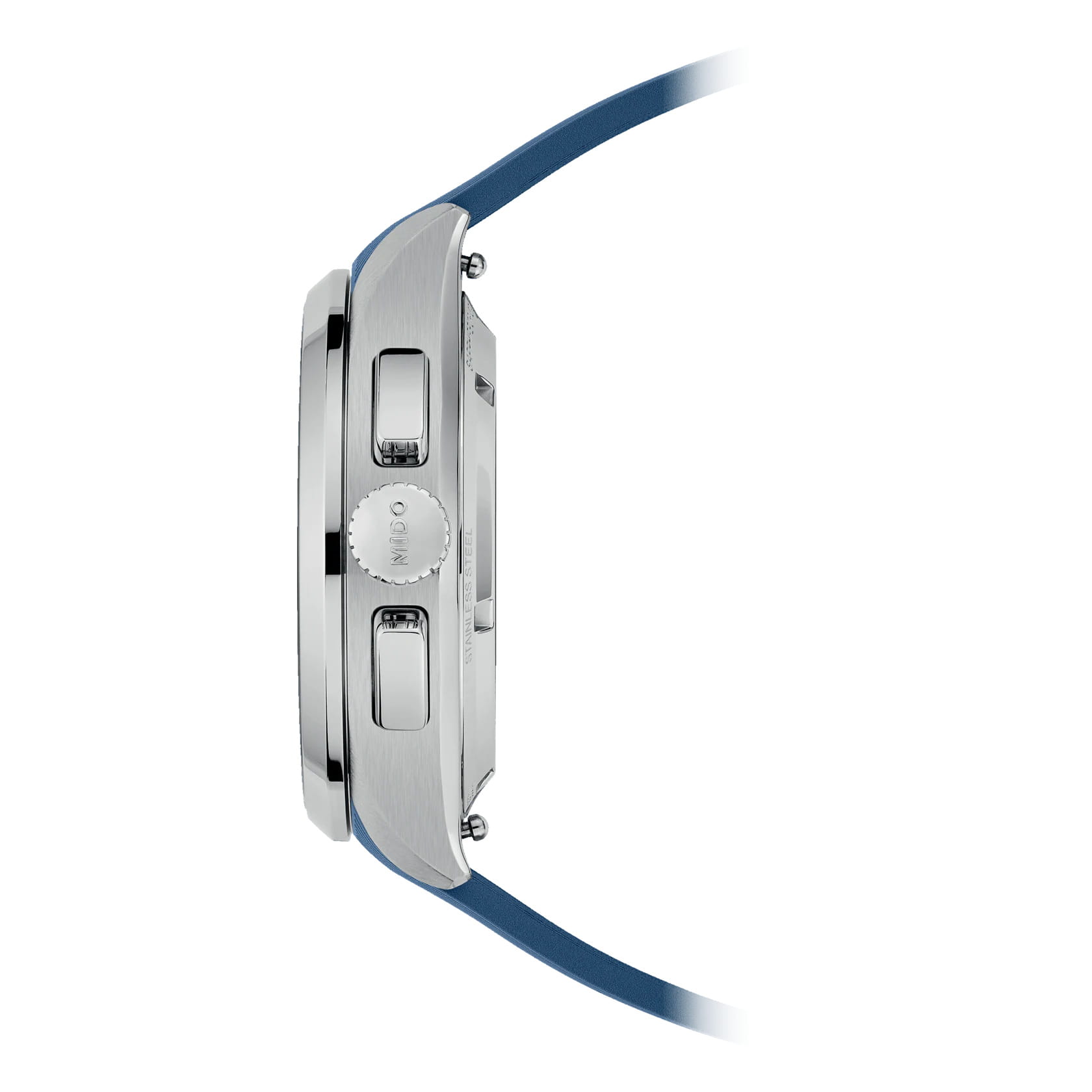 Швейцарские мужские наручные часы Mido Multifort Skeleton Chronograph M038.662.17.040.00, механический механизм с высокой точностью. Циферблат c сапфировым стекломСапфировое стеклоПрочный и надёжный материал из кристалла сапфира синтетического происхождения, характеризующийся особой твёрдостью и устойчивостью к царапинам и повреждениям., устойчивым к появлению царапин и обладающее высокой прозрачностью. Класс водозащиты: 100 метров, позволит плавать, нырять и заниматься другими водными видами спорта. Часы оснащены люминесцентным покрытиемЛюминесцентное покрытиеПозволяет считывать показания времени в темноте. Производители наносят на стрелки, часовые индексы, безель или поверхность циферблата светонакопительный состав, дающий холодное свечение., обеспечивающим отличную видимость даже при слабом освещении. Корпус часов изготовлен из стали. Часы с балансом из Nivachron™Nivachron™Специально разработанный инновационный сплав Nivachron™ повышает устойчивость часов к воздействию магнитных полей., обеспечивающим высокую устойчивость к магнитным полям и ударам. Часы с функциями хронографаХронографФункция позволяет измерять отрезки времени с особой точностью: часы, минуты, секунды. Верным признаком хронографа является наличие на циферблате 3 дополнительных окошек-счётчиков. и тахиметраТахиметрРазмеченная шкала, располагается на ободке или безеле часов. Тахиметр позволяет рассчитать скорость на определённом участке пути, расстояние измеряется в километрах или милях.. Каучуковый ремешок синего цвета со стандартной застежкой обеспечивает комфортное ношение.