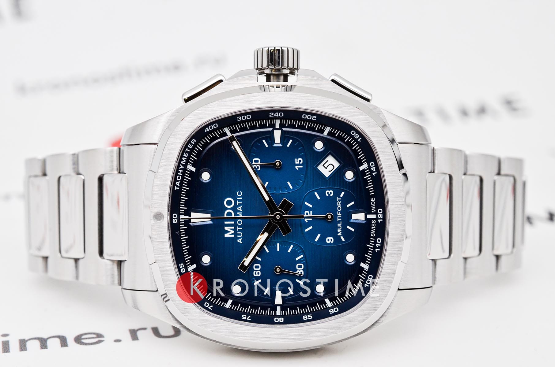 Мужские механические швейцарские часы Mido Multifort TV Chronograph M049.527.11.041.00, механический механизм с высокой точностью. Сапфировое стеклоСапфировое стеклоПрочный и надёжный материал из кристалла сапфира синтетического происхождения, характеризующийся особой твёрдостью и устойчивостью к царапинам и повреждениям. устойчивое к появлению царапин, обладающее высокой прозрачностью. Корпус часов изготовлен из нержавеющей стали. В механизм внедрена пружина баланса Nivachron™Nivachron™Специально разработанный инновационный сплав Nivachron™ повышает устойчивость часов к воздействию магнитных полей.. Стрелки с люминесцентным покрытиемЛюминесцентное покрытиеПозволяет считывать показания времени в темноте. Производители наносят на стрелки, часовые индексы, безель или поверхность циферблата светонакопительный состав, дающий холодное свечение.. Окошко даты в положении между 4 и 6 часами. Класс водозащиты: 100 метров, позволит плавать, нырять и заниматься другими водными видами спорта. Стальной браслет на раскладной застёжкеРаскладная застёжкаТакой тип застёжки используется только на браслетах из металла. Она никогда не раскрывается полностью, происходит разделение на 2 и более частей. Раскладывающая застёжка снизит вероятность потери часов к минимуму..Часы с функциями хронографаХронографФункция позволяет измерять отрезки времени с особой точностью: часы, минуты, секунды. Верным признаком хронографа является наличие на циферблате 3 дополнительных окошек-счётчиков. и тахиметраТахиметрРазмеченная шкала, располагается на ободке или безеле часов. Тахиметр позволяет рассчитать скорость на определённом участке пути, расстояние измеряется в километрах или милях.. Поставляются с дополнительным ремешком, что обеспечивает еще большую универсальность и комфорт.