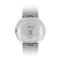 Циферблат с фирменным логотипом Mido 1950-х годов украшен накладными индексами и стрелками с люминесцентным покрытиемЛюминесцентное покрытиеПозволяет считывать показания времени в темноте. Производители наносят на стрелки, часовые индексы, безель или поверхность циферблата светонакопительный состав, дающий холодное свечение., обеспечивающим читаемость даже в условиях слабого освещения. На «3 часах» расположено двойное окошко календаря — день недели и дата. Стальной браслет миланского плетения на раскладном замкеРаскладной замокДанный вариант застежки используется только на часах с металлическим браслетом. Отличительная особенность такого крепления в том, что длина браслета становится универсальной и вы можете самостоятельно отрегулировать нужный вам размер – застежка просто двигается по браслету часов..Модель защищена акриловым стеклом, сохраняющим аутентичный винтажный характер. Прозрачная задняя крышка открывает вид на автоматический механизм с автоподзаводом и 80-часовым запасом хода.