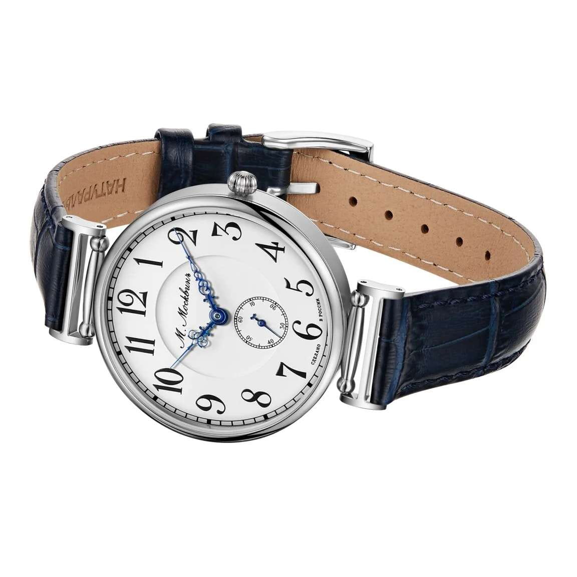 Женские кварцевые часы Михаил Москвин 1234L-1 из коллекции Elegance - воплощение утончённой классики с современными деталями. Круглый корпус диаметром 38 мм из полированной нержавеющей стали, белый циферблат с многослойным керамическим покрытием, арабские цифры и малый секундный циферблат. Стекло сапфировоеСапфировое стеклоПрочный и надёжный материал из кристалла сапфира синтетического происхождения, характеризующийся особой твёрдостью и устойчивостью к царапинам и повреждениям., устойчивое к царапинам и сохраняющее кристальную чёткость. Рифлёная заводная головка и задняя крышка на четырёх винтах с декоративной гравировкой подчёркивают внимание к деталям и качество сборки. Водонепроницаемость 50 м (5 ATM) подходит для повседневного ношения, включая дождь и умывание. Кожаный ремешок шириной 16 мм на стандартной застёжке. Идеальный выбор для женщины, ценящей элегантность, швейцарскую точность, роскошное исполнение и лаконичный белый циферблат в универсальном формате.