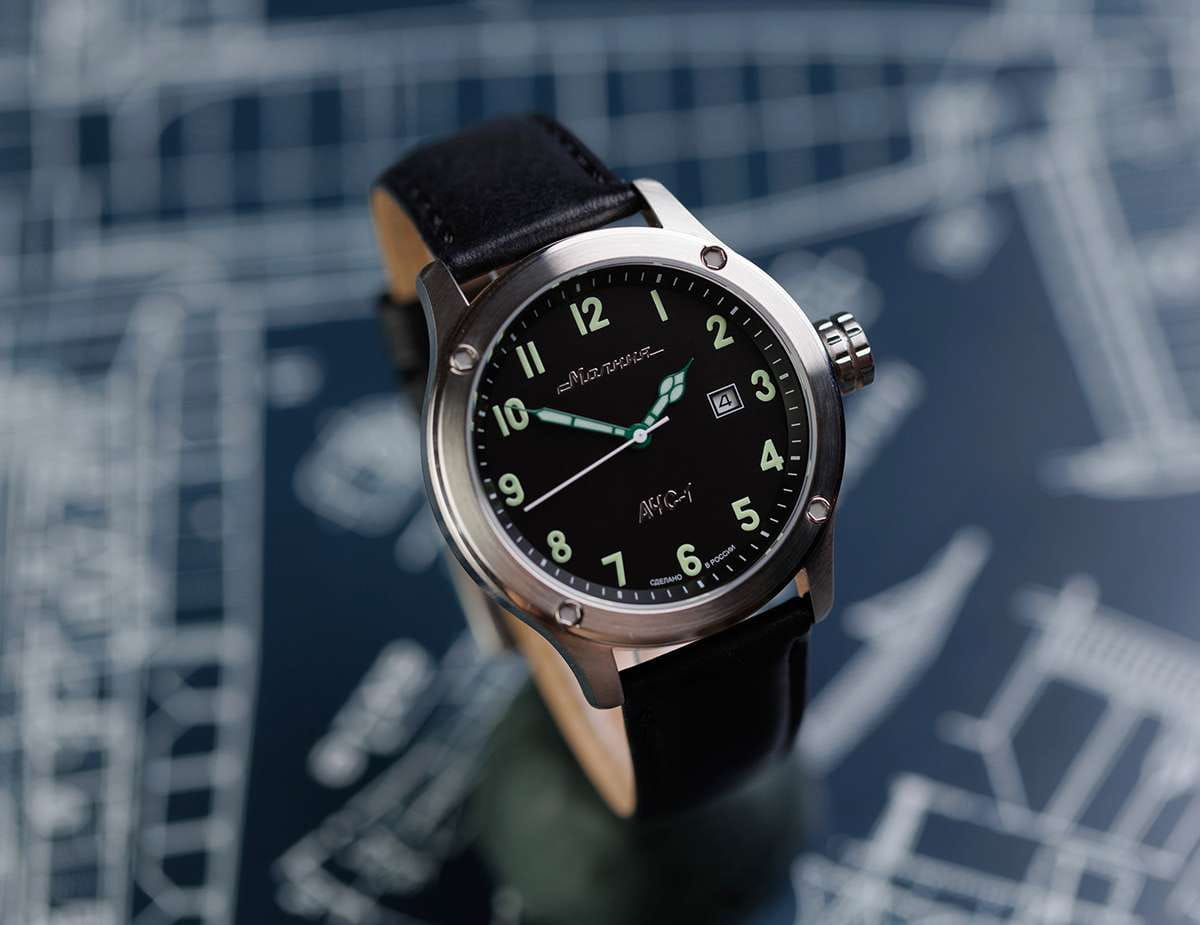 Мужские механические часы с автоподзаводом — это надёжный аксессуар от легендарного бренда «МОЛНИЯ», созданного на Челябинском часовом заводе. Корпус диаметром 44 мм и высотой 12 мм выполнен из нержавеющей стали 316L с матовой полировкой. БезельБезельВнешний ободок, закрепляющий стекло. В спортивных часах так называется поворотное кольцо с делениями на циферблате, выполняет роль таймера – замеряет отрезки времени на шкале. Неподвижный безель – элемент декора. Однонаправленно вращающийся безель на дайверских часах позволяет фиксировать моменты погружения и выныривания на поверхность. также выполнен из стали с матовой отделкой. Циферблат чёрного цвета матовый, оформлен стрелками и индексами с люминесцентным покрытиемЛюминесцентное покрытиеПозволяет считывать показания времени в темноте. Производители наносят на стрелки, часовые индексы, безель или поверхность циферблата светонакопительный состав, дающий холодное свечение. Super-LumiNova. Окошко даты расположено в положении 3 часов. Циферблат защищён сапфировым стекломСапфировое стеклоПрочный и надёжный материал из кристалла сапфира синтетического происхождения, характеризующийся особой твёрдостью и устойчивостью к царапинам и повреждениям. толщиной 1,5 мм. Механизм — японский автоматический калибр Miyota 8215 с функцией и запасом хода 42 часа. Часы оснащены кожаным ремешком чёрного цвета шириной 22 мм с классической пряжкой. Водонепроницаемость 100 м позволяет использовать часы для плавания и повседневного ношения. Идеальный выбор для тех, кто ценит российское качество и мужественный дизайн.