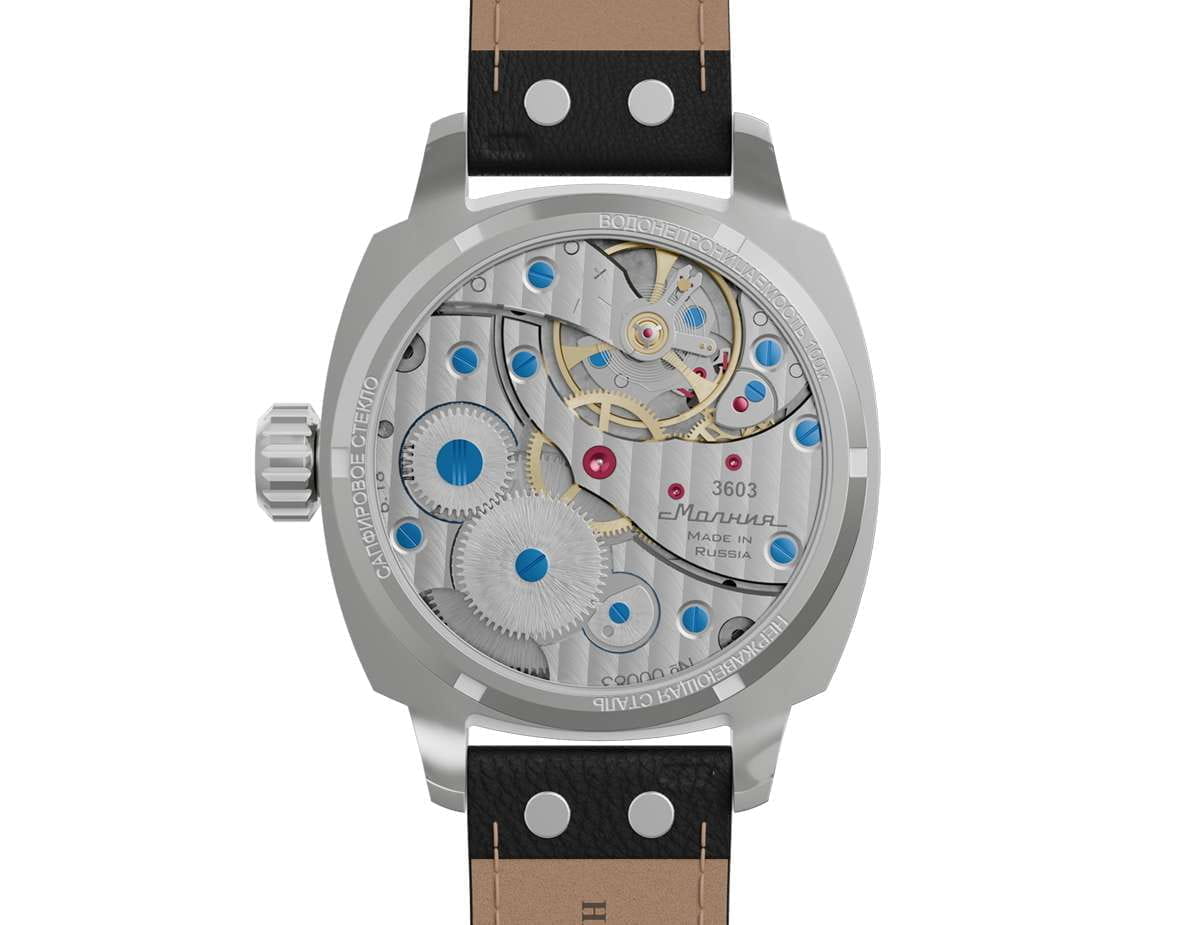 Мужские механические часы с ручным подзаводом — это аксессуар от легендарного бренда «МОЛНИЯ», созданный на Челябинском часовом заводе. Корпус диаметром 42 мм выполнен из нержавеющей стали 316L с зеркальной полировкой. БезельБезельВнешний ободок, закрепляющий стекло. В спортивных часах так называется поворотное кольцо с делениями на циферблате, выполняет роль таймера – замеряет отрезки времени на шкале. Неподвижный безель – элемент декора. Однонаправленно вращающийся безель на дайверских часах позволяет фиксировать моменты погружения и выныривания на поверхность. также выполнен из стали с зеркальной отделкой. Циферблат зелёного цвета оформлен индексами и стрелками. Малая секундная стрелка вынесена на позицию 9 часов. Стрелки и метки с люминесцентным покрытиемЛюминесцентное покрытиеПозволяет считывать показания времени в темноте. Производители наносят на стрелки, часовые индексы, безель или поверхность циферблата светонакопительный состав, дающий холодное свечение. Super-LumiNova, обеспечивающим хорошую читаемость в темноте. Циферблат защищён сапфировым стекломСапфировое стеклоПрочный и надёжный материал из кристалла сапфира синтетического происхождения, характеризующийся особой твёрдостью и устойчивостью к царапинам и повреждениям. с антибликовым покрытиемАнтибликовое покрытиеСлой оксида металла в 0,13-0,3 микрон, благодаря которому стекло часов не бликует и не отражает свет. Антибликовое покрытие уменьшает отражение света в 10 раз, обеспечивая отличную читаемость показателей циферблата.. Механизм — мануфактурный калибр 3603, собранный вручную, с запасом хода до 40 часов. Прозрачная задняя крышка позволяет наблюдать за работой механизма. Часы оснащены кожаным ремешком чёрного цвета с белой отстрочкой и классической пряжкой. Водонепроницаемость 100 м позволяет использовать часы для плавания и повседневного ношения. Идеальный выбор для тех, кто ценит российское качество и традиции.