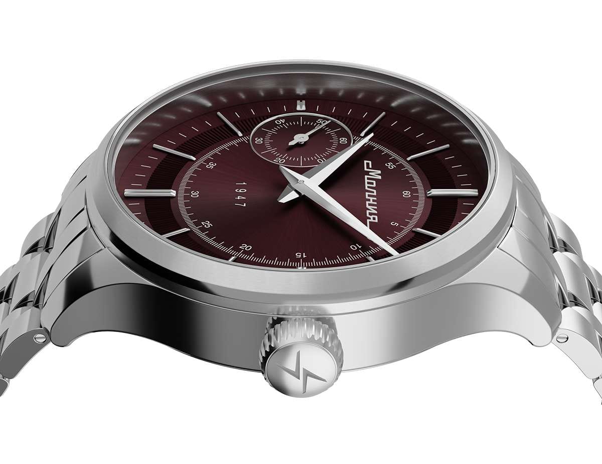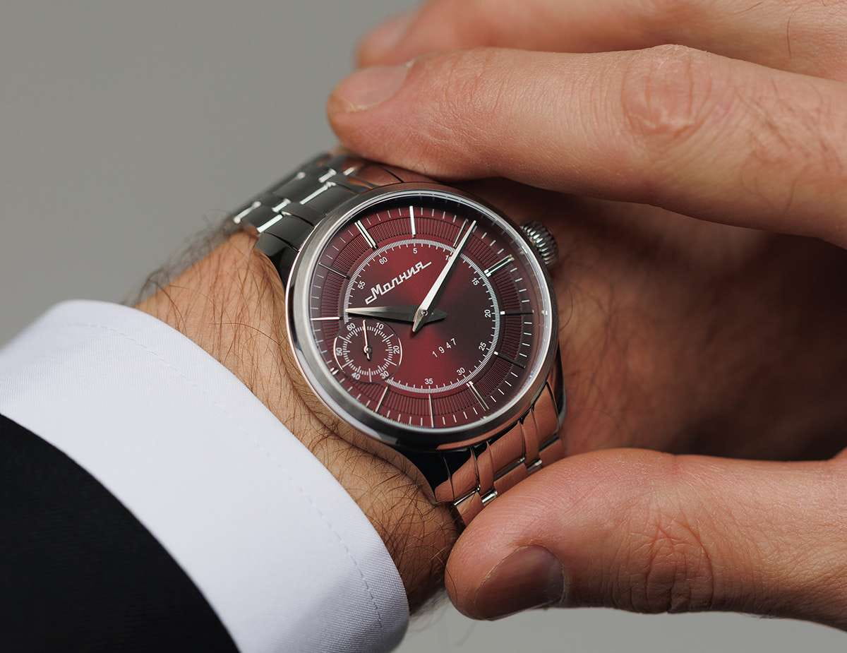 Мужские механические часы с ручным подзаводом — это аксессуар от легендарного бренда «МОЛНИЯ», созданный на Челябинском часовом заводе. Корпус диаметром 41 мм выполнен из нержавеющей стали 316L с зеркальной полировкой. БезельБезельВнешний ободок, закрепляющий стекло. В спортивных часах так называется поворотное кольцо с делениями на циферблате, выполняет роль таймера – замеряет отрезки времени на шкале. Неподвижный безель – элемент декора. Однонаправленно вращающийся безель на дайверских часах позволяет фиксировать моменты погружения и выныривания на поверхность. также выполнен из стали с зеркальной отделкой. Циферблат красного цвета оформлен индексами и стрелками. Малая секундная стрелка вынесена на позицию 9 часов. Циферблат защищён сапфировым стекломСапфировое стеклоПрочный и надёжный материал из кристалла сапфира синтетического происхождения, характеризующийся особой твёрдостью и устойчивостью к царапинам и повреждениям. толщиной 2 мм. Механизм — мануфактурный калибр 3603, собранный вручную, с запасом хода до 40 часов. Прозрачная задняя крышка позволяет наблюдать за работой механизма. Часы оснащены стальным браслетом с раскладной застёжкойРаскладная застёжкаТакой тип застёжки используется только на браслетах из металла. Она никогда не раскрывается полностью, происходит разделение на 2 и более частей. Раскладывающая застёжка снизит вероятность потери часов к минимуму. с кнопочным открытием и системой быстрой замены. Водонепроницаемость 50 м позволяет использовать часы в повседневных условиях. Идеальный выбор для тех, кто ценит российское качество и традиции.