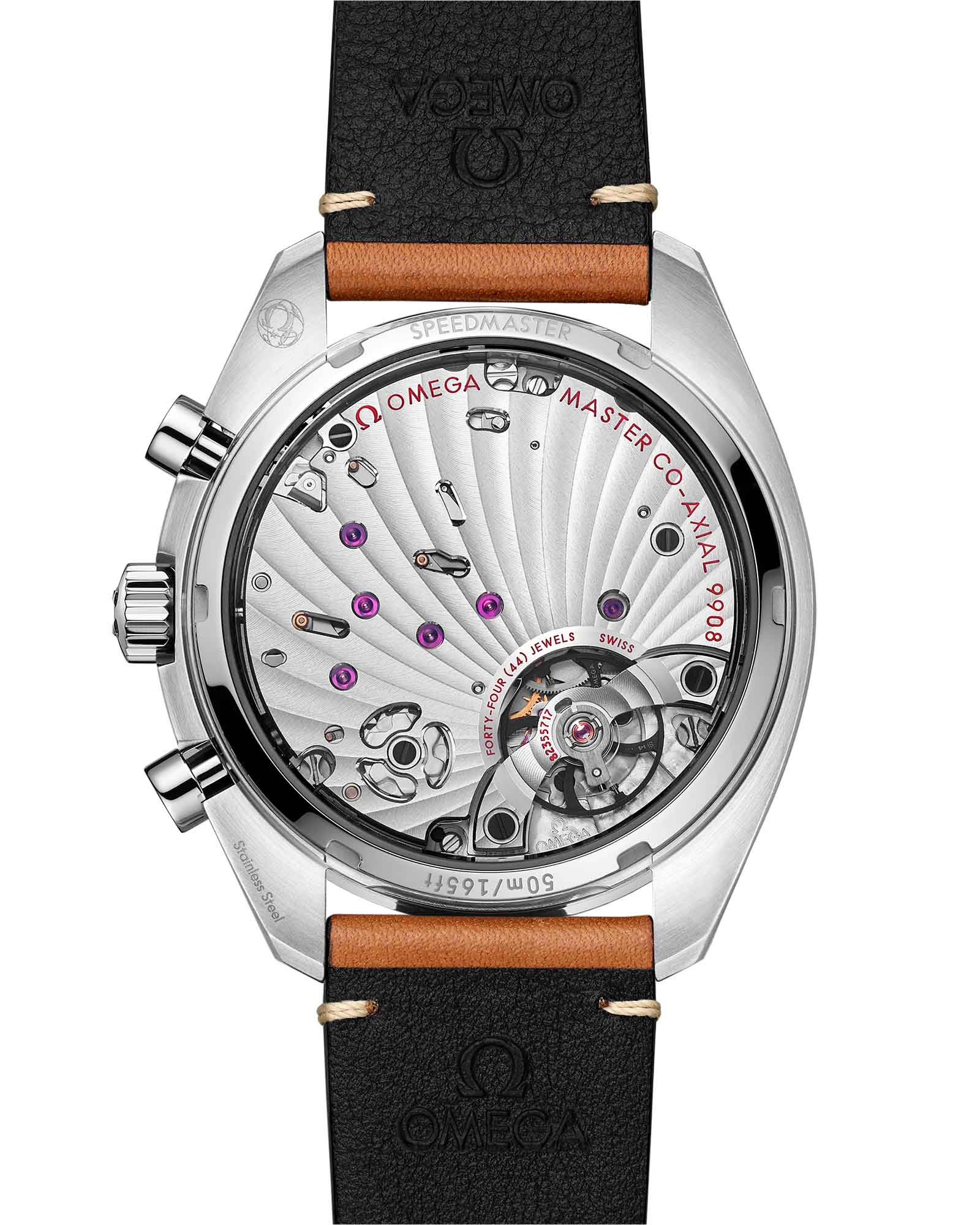 Коллекция Chronoscope искусно переосмысливает наследие OMEGA, соединяя эстетику хронографов 1940-х с культовым стилем Speedmaster. 43-мм корпус из нержавеющей стали с синим безелемБезельВнешний ободок, закрепляющий стекло. В спортивных часах так называется поворотное кольцо с делениями на циферблате, выполняет роль таймера – замеряет отрезки времени на шкале. Неподвижный безель – элемент декора. Однонаправленно вращающийся безель на дайверских часах позволяет фиксировать моменты погружения и выныривания на поверхность. из анодированного алюминия обрамляет насыщенный синий циферблат, где серебристые счетчики гармонируют со спиралевидным узором и арабскими цифрами с родиевым покрытием. Изящные стрелки в форме листьев дополняют винтажный образ. Циферблат украшают три исторические шкалы в форме улитки: тахиметрическаяТахиметрРазмеченная шкала, располагается на ободке или безеле часов. Тахиметр позволяет рассчитать скорость на определённом участке пути, расстояние измеряется в километрах или милях., пульсометрическая и телеметрическая. На позиции "9 часов" расположен счетчик малых секунд, а на "3 часах" - 60-минутный и 12-часовой индикаторы. Часы дополнены коричневым кожаным ремешком в винтажном стиле и оснащены передовым калибром OMEGA Co-Axial Master Chronometer 9908, где традиции встречаются с инновациями.