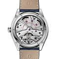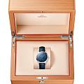 OMEGA De Ville Trésor — возрождение легенды 1949 года, где классическая элегантность встречает современные технологии. 40-мм корпус из нержавеющей стали с синим кожаным ремешком продолжает традиции тонкого дизайна. Выпуклый синий циферблат с изысканным узором украшен стрелками и индексами из белого золота18-каратное золотоОбозначение по каратной системе пробирования, оно показывает, сколько драгоценного металла содержится в изделии. 18 карат - в составе 75% чистого золота, соответствует 750 пробе.