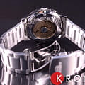 Аксессуар в серебристой расцветке отличается высокой точностью хода благодаря автоматическому японскому механизму Orient 46943. Калибр сохраняет запас хода на 40 часов. Корпус выполнен из долговечной стали 316L с антикоррозионными свойствами. Стрелки имеют люминесцентную подсветкуЛюминесцентное покрытиеПозволяет считывать показания времени в темноте. Производители наносят на стрелки, часовые индексы, безель или поверхность циферблата светонакопительный состав, дающий холодное свечение., на метке 3 часов расположено окошко даты и дня недели.