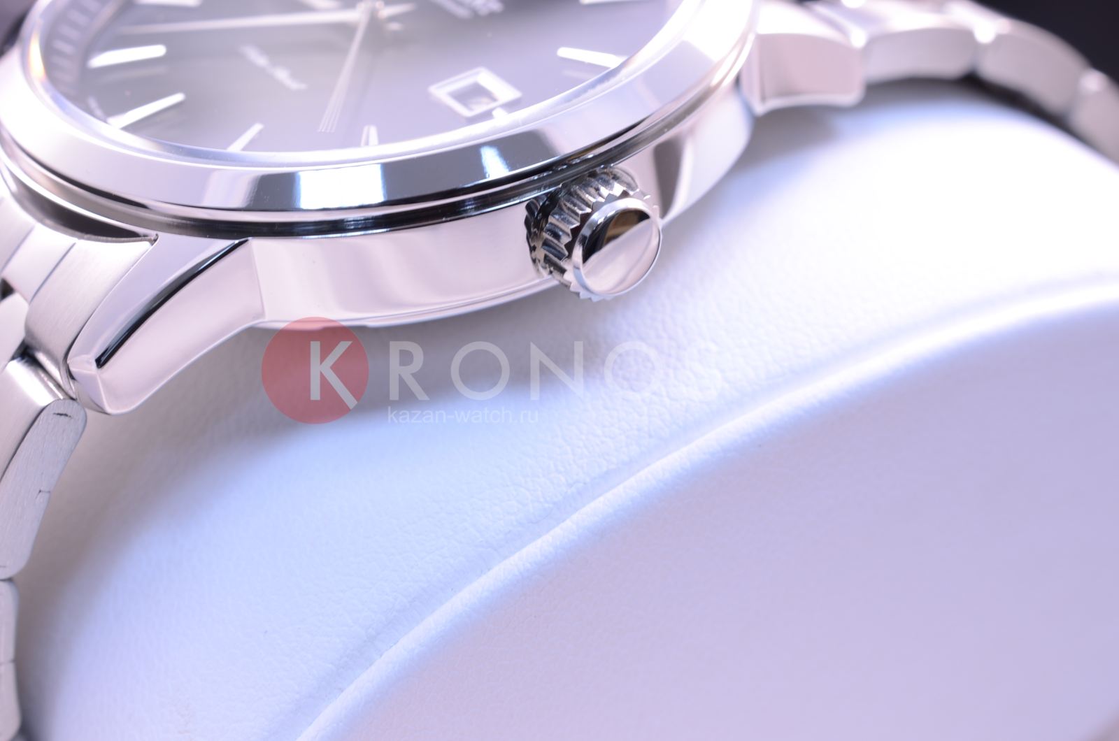 Аксессуар с тёмным циферблатом станет элегантным завершением образа, стильные наручные часы с корпусом и браслетом из серебристой нержавеющей стали подойдут ценителям минималистичного дизайна. Автоматический японский калибр сохраняет запас хода до 40 часов, позволяя не думать о необходимости регулярного завода. Прозрачная задняя крышка позволяет следить за его безупречной работой. Минеральное стекло. Водонепроницаемость при давлении 5 бар. Индикация числа. Габариты: 41,2 x 41,2 x 12 мм.