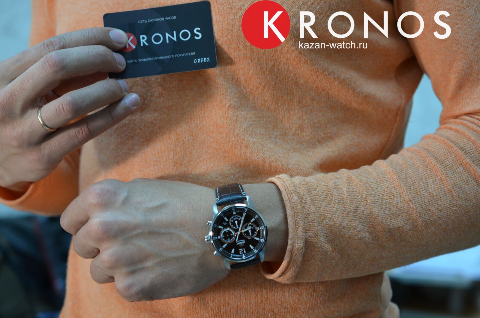Кварцевые часы с хронографом. Часы, минуты, секунды, 12-24-х часовой формат времени. Индикация даты. Счетчик хронографа до 30 минут. Корпус выполнен из нержавеющей стали. Люминесцентные стрелки и метки. Коричневый кожаный ремешок.