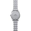 Orient RA-WG0603R — женская кварцевая модель из коллекции Contemporary с элегантным и сдержанным дизайном. Корпус диаметром 32 мм выполнен из нержавеющей стали, создающим изысканный акцент. Красный циферблат украшен тонкими метками и стрелками с люминесцентным покрытиемЛюминесцентное покрытиеПозволяет считывать показания времени в темноте. Производители наносят на стрелки, часовые индексы, безель или поверхность циферблата светонакопительный состав, дающий холодное свечение., обеспечивающими лёгкую читаемость, а апертура даты расположена в позиции «3 часа». Защитную функцию выполняет минеральное стеклоМинеральное стеклоМинеральное стекло представляет собой искусственно выращенный минерал кварца. Такое стекло отличается особой устойчивостью к повреждениям и царапинам. Уступает по некоторым качествам сапфировому стеклу., стойкое к повседневным повреждениям. Часы работают на точном кварцевом механизме на солнечной энергии, не требующем подзавода. Водозащита составляет 5 бар (50 м), что защищает модель от брызг и дождя. Браслет из нержавеющей стали гармонично завершает образ, подчеркивая классический стиль и универсальность этих часов.