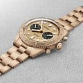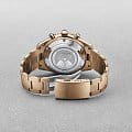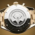 Браслет из бронзовы оснащен раскладывающейся застежкойРаскладная застёжкаТакой тип застёжки используется только на браслетах из металла. Она никогда не раскрывается полностью, происходит разделение на 2 и более частей. Раскладывающая застёжка снизит вероятность потери часов к минимуму., гарантирующей комфортную фиксацию на запястье. Завинчивающаяся задняя крышка из нержавеющей стали с специальной гравировкой и завинчивающаяся заводная головка обеспечивают водонепроницаемость до 10 бар (WR100), что делает эти часы идеальными для плавания и других водных видов спорта.