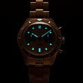 Стрелки и индексы покрыты составом Super-LumiNova, люминесцентное покрытиеЛюминесцентное покрытиеПозволяет считывать показания времени в темноте. Производители наносят на стрелки, часовые индексы, безель или поверхность циферблата светонакопительный состав, дающий холодное свечение., что обеспечивает превосходную видимость в темноте. Вращающийся в одном направлении безель с минутной шкалой добавляет функциональности для подводных погружений.