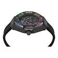 Эти бесподобные часы в стильном дизайне с точным и надежным механизмом завораживают своим корпусом геометричной формы и культовыми элементами бренда и без сомнений сделают мужской образ еще более харизматичным и брутальным. Скелетонизированные мужские механические часы с автоподзаводом. Необычный стальной корпус с IP-покрытиемIP-покрытиеМетод ионного напыления. Демонстрирует повышенную устойчивость к истиранию, окислению и химическим веществам. Под воздействием высокого давления и температуры около 1500°C молекулы металла надёжно соединяются с частицами корпуса часов.. Циферблат декорирован логотипом бренда в положении 12 часов и изображением черепа с костями. Метки в виде штрихов. Минеральное стеклоМинеральное стеклоМинеральное стекло представляет собой искусственно выращенный минерал кварца. Такое стекло отличается особой устойчивостью к повреждениям и царапинам. Уступает по некоторым качествам сапфировому стеклу. устойчивое к мелким механическим повреждениям. Стрелки и метки с люминесцентным покрытиемЛюминесцентное покрытиеПозволяет считывать показания времени в темноте. Производители наносят на стрелки, часовые индексы, безель или поверхность циферблата светонакопительный состав, дающий холодное свечение.. Граненая заводная головка. Неподвижный безельБезельВнешний ободок, закрепляющий стекло. В спортивных часах так называется поворотное кольцо с делениями на циферблате, выполняет роль таймера – замеряет отрезки времени на шкале. Неподвижный безель – элемент декора. Однонаправленно вращающийся безель на дайверских часах позволяет фиксировать моменты погружения и выныривания на поверхность. с IP-покрытиемIP-покрытиеМетод ионного напыления. Демонстрирует повышенную устойчивость к истиранию, окислению и химическим веществам. Под воздействием высокого давления и температуры около 1500°C молекулы металла надёжно соединяются с частицами корпуса часов. и кристаллами. На задней крышке имеется прозрачное окошко, через которое можно наблюдать работу механизма часов. Черный перфорированный силиконовый ремешок с классической застежкой и шестиугольным логотипом бренда. Фирменная дизайнерская упаковка.