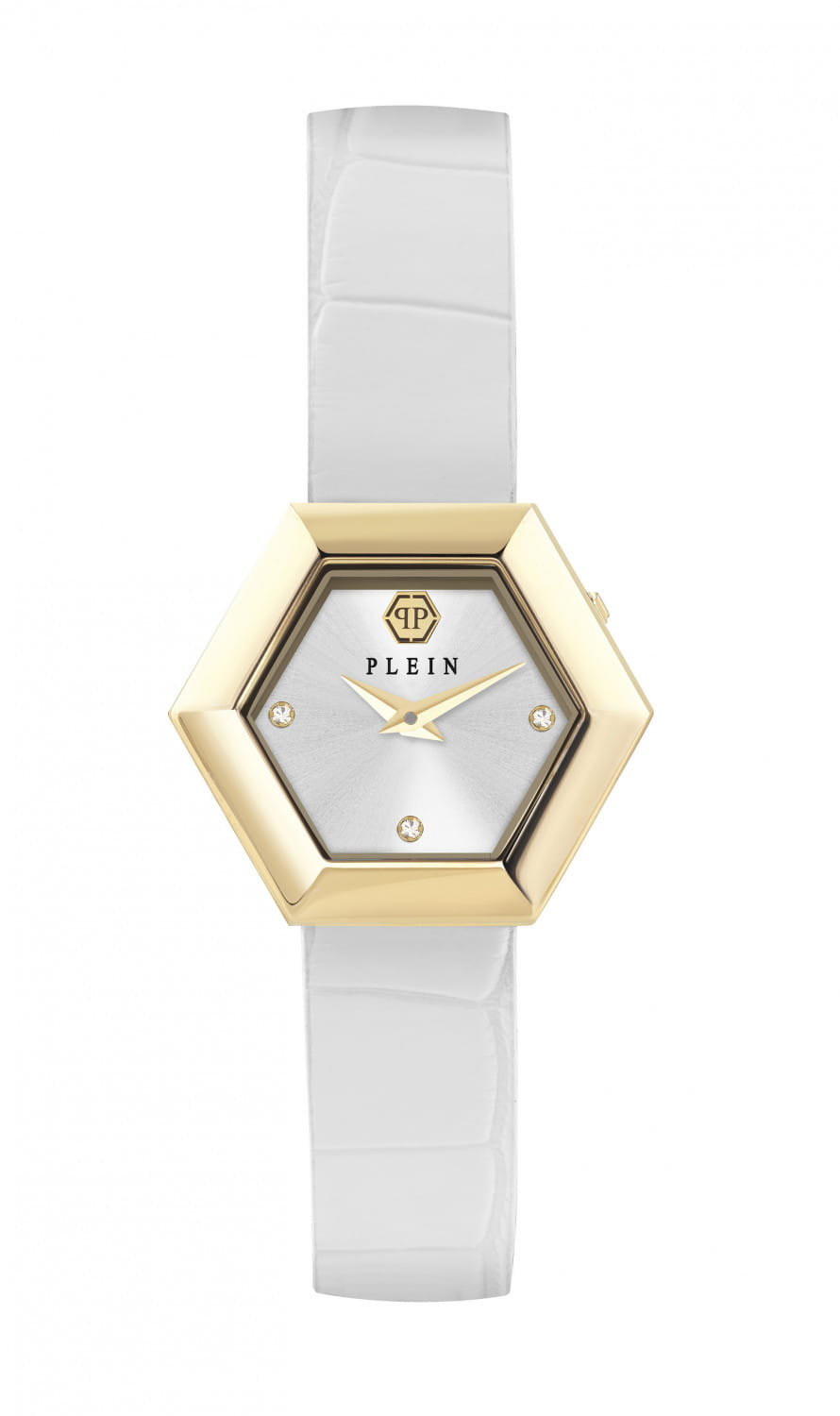 Женские кварцевые часы Philipp Plein La Jungle De Plein PW6FA0125_SET — это стильное сочетание элегантности и современного дизайна. Изящный корпус выполнен из нержавеющей стали с PVD-покрытиемPVDУльтратонкое покрытие наносится в технике вакуумного напыления, сочетает в себе нитрид титана особой прочности со слоем золота или оксида хрома. Несёт в себе декоративную или защитную функцию. золотистого цвета, диаметром 28 мм, что придаст образу женственности и романтизма. Изысканный циферблат с метками в виде точек украшены кристаллами придает модели особый блеск. Циферблат защищен минеральным стекломМинеральное стеклоМинеральное стекло представляет собой искусственно выращенный минерал кварца. Такое стекло отличается особой устойчивостью к повреждениям и царапинам. Уступает по некоторым качествам сапфировому стеклу., обеспечивающий устойчивость к царапинам. Часы оснащены надежным кварцевым механизмом. Кожаный ремешок на стандартной застёжке, гарантирует комфортное и безопасное ношение. Класс водозащиты: 50 метров позволит защитить корпус от случайных брызг или капель дождя. Phlipp Plein — отличный выбор для тех, кто ценит яркость и качество. В комплекте доп. ремешок из искусственной кожи.