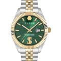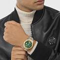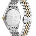 Philipp Plein Date Superlative PWMFA0825 - часы в современном дизайне несомненно добавят вам выразительности и станут главным акцентом вашего стильного образа. Мужские кварцевые часы с высокой точностью. Круглый стальной корпус серебристого цвета, диаметром 41 мм. Циферблат декорирован логотипом бренда в положении 12 часов, метки в виде штрихов. Минеральное стеклоМинеральное стеклоМинеральное стекло представляет собой искусственно выращенный минерал кварца. Такое стекло отличается особой устойчивостью к повреждениям и царапинам. Уступает по некоторым качествам сапфировому стеклу. защищает циферблат от царапин. Люминесцентное покрытиеЛюминесцентное покрытиеПозволяет считывать показания времени в темноте. Производители наносят на стрелки, часовые индексы, безель или поверхность циферблата светонакопительный состав, дающий холодное свечение. стрелок позволит следить за временем даже в полной темноте. Рифленый безельБезельВнешний ободок, закрепляющий стекло. В спортивных часах так называется поворотное кольцо с делениями на циферблате, выполняет роль таймера – замеряет отрезки времени на шкале. Неподвижный безель – элемент декора. Однонаправленно вращающийся безель на дайверских часах позволяет фиксировать моменты погружения и выныривания на поверхность. с PVD-покрытиемPVDУльтратонкое покрытие наносится в технике вакуумного напыления, сочетает в себе нитрид титана особой прочности со слоем золота или оксида хрома. Несёт в себе декоративную или защитную функцию. золотистого цвета. Окошко даты находится в положении 3 часа. Стальной браслет с частичным PVD-покрытиемPVDУльтратонкое покрытие наносится в технике вакуумного напыления, сочетает в себе нитрид титана особой прочности со слоем золота или оксида хрома. Несёт в себе декоративную или защитную функцию. на застёжке-бабочке с кнопкамиЗастёжка "бабочка"Такой вид застёжки дополняется предохранителями, помогающими избежать случайного раскрытия браслета. Обладают изящным исполнением. , обеспечивает комфортное ношение. Граненая заводная головка. Влагозащита: 50 метров, позволит защитить корпус от случайных брызг или капель дождя. Идеальный аксессуар для тех, кто ценит индивидуальность и не боится выделяться из толпы.