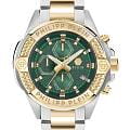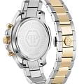 Philipp Plein The $kull Chrono PWWFA0525 - яркие часы-хронографХронографФункция позволяет измерять отрезки времени с особой точностью: часы, минуты, секунды. Верным признаком хронографа является наличие на циферблате 3 дополнительных окошек-счётчиков. в революционном дизайне несомненно добавят вам выразительности и станут главным акцентом вашего стильного образа. Мужские кварцевые часы с высокой точностью. Круглый стальной корпус серебристого цвета, диаметром 44 мм. Метки в виде штрихов. БезельБезельВнешний ободок, закрепляющий стекло. В спортивных часах так называется поворотное кольцо с делениями на циферблате, выполняет роль таймера – замеряет отрезки времени на шкале. Неподвижный безель – элемент декора. Однонаправленно вращающийся безель на дайверских часах позволяет фиксировать моменты погружения и выныривания на поверхность. с PVD-покрытиемPVDУльтратонкое покрытие наносится в технике вакуумного напыления, сочетает в себе нитрид титана особой прочности со слоем золота или оксида хрома. Несёт в себе декоративную или защитную функцию. золотистого цвета. Минеральное стеклоМинеральное стеклоМинеральное стекло представляет собой искусственно выращенный минерал кварца. Такое стекло отличается особой устойчивостью к повреждениям и царапинам. Уступает по некоторым качествам сапфировому стеклу. защищает циферблат от царапин. Люминесцентное покрытиеЛюминесцентное покрытиеПозволяет считывать показания времени в темноте. Производители наносят на стрелки, часовые индексы, безель или поверхность циферблата светонакопительный состав, дающий холодное свечение. стрелок и меток позволит следить за временем даже в полной темноте. Окошко даты находится в положении 4 часа. Стальной браслет с частичным PVD-покрытиемPVDУльтратонкое покрытие наносится в технике вакуумного напыления, сочетает в себе нитрид титана особой прочности со слоем золота или оксида хрома. Несёт в себе декоративную или защитную функцию. на застёжке-бабочке с кнопкамиЗастёжка "бабочка"Такой вид застёжки дополняется предохранителями, помогающими избежать случайного раскрытия браслета. Обладают изящным исполнением. , обеспечивает комфортное ношение. Граненая заводная головка. Влагозащита: 50 метров, позволит защитить корпус от случайных брызг или капель дождя. Идеальный аксессуар для тех, кто ценит индивидуальность и не боится выделяться из толпы.