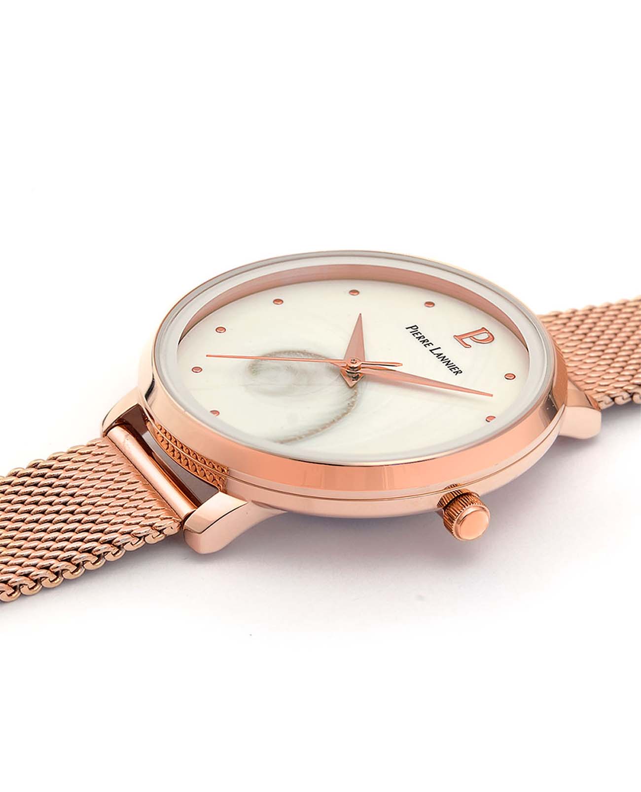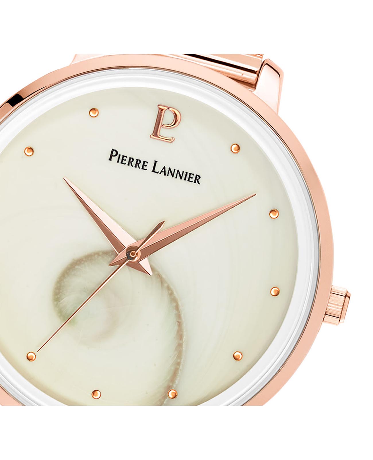 Женские часы Pierre Lannier Ocean 029L998, кварцевый механизм с высокой точностью. Прочное минеральное стеклоМинеральное стеклоМинеральное стекло представляет собой искусственно выращенный минерал кварца. Такое стекло отличается особой устойчивостью к повреждениям и царапинам. Уступает по некоторым качествам сапфировому стеклу., устойчивое к мелким механическим повреждениям. Круглый корпус выполнен из нержавеющей стали с IP-покрытиемIP-покрытиеМетод ионного напыления. Демонстрирует повышенную устойчивость к истиранию, окислению и химическим веществам. Под воздействием высокого давления и температуры около 1500°C молекулы металла надёжно соединяются с частицами корпуса часов.. Перламутровый циферблат украшает уникальное изображение глаза Сент-Люсии. Центральные часовая и минутная стрелки. Класс водозащиты: 30 метров, позволит защитить корпус от случайных брызг или капель дождя. Стальной браслет миланского плетения с IP-покрытиемIP-покрытиеМетод ионного напыления. Демонстрирует повышенную устойчивость к истиранию, окислению и химическим веществам. Под воздействием высокого давления и температуры около 1500°C молекулы металла надёжно соединяются с частицами корпуса часов. на раскладном замкеРаскладной замокДанный вариант застежки используется только на часах с металлическим браслетом. Отличительная особенность такого крепления в том, что длина браслета становится универсальной и вы можете самостоятельно отрегулировать нужный вам размер – застежка просто двигается по браслету часов..