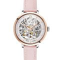 Женские механические часы с автоподзаводом Pierre Lannier Automatic 312B625. Минеральное стеклоМинеральное стеклоМинеральное стекло представляет собой искусственно выращенный минерал кварца. Такое стекло отличается особой устойчивостью к повреждениям и царапинам. Уступает по некоторым качествам сапфировому стеклу. устойчивое к мелким механическим повреждениям. Скелетонизированный серебристый циферблат. Центральные часовая, минутная и секундная стрелки. Корпус выполнен из полированной нержавеющей стали с IP-покрытиемIP-покрытиеМетод ионного напыления. Демонстрирует повышенную устойчивость к истиранию, окислению и химическим веществам. Под воздействием высокого давления и температуры около 1500°C молекулы металла надёжно соединяются с частицами корпуса часов. цвета розового золота. Неподвижный безельБезельВнешний ободок, закрепляющий стекло. В спортивных часах так называется поворотное кольцо с делениями на циферблате, выполняет роль таймера – замеряет отрезки времени на шкале. Неподвижный безель – элемент декора. Однонаправленно вращающийся безель на дайверских часах позволяет фиксировать моменты погружения и выныривания на поверхность. из нержавеющей стали с IP-покрытиемIP-покрытиеМетод ионного напыления. Демонстрирует повышенную устойчивость к истиранию, окислению и химическим веществам. Под воздействием высокого давления и температуры около 1500°C молекулы металла надёжно соединяются с частицами корпуса часов. цвета розового золота. Водостойкость: 30 метров, позволит защитить корпус от случайных брызг или капель дождя. Розовый кожаный ремешок, стандартная застежка.