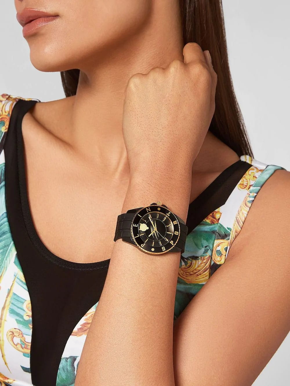 Немецкие женские кварцевые часы с минеральным стекломМинеральное стеклоМинеральное стекло представляет собой искусственно выращенный минерал кварца. Такое стекло отличается особой устойчивостью к повреждениям и царапинам. Уступает по некоторым качествам сапфировому стеклу. Plein Sport Glam PSKBA0323, кварцевый механизм с высокой точностью. Класс водозащиты: 50 метров, позволит защитить корпус от случайных брызг или капель дождя. Корпус часов изготовлен из стали с IP-покрытиемIP-покрытиеМетод ионного напыления. Демонстрирует повышенную устойчивость к истиранию, окислению и химическим веществам. Под воздействием высокого давления и температуры около 1500°C молекулы металла надёжно соединяются с частицами корпуса часов.. Силиконовый ремешок на стандартной застёжке. БезельБезельВнешний ободок, закрепляющий стекло. В спортивных часах так называется поворотное кольцо с делениями на циферблате, выполняет роль таймера – замеряет отрезки времени на шкале. Неподвижный безель – элемент декора. Однонаправленно вращающийся безель на дайверских часах позволяет фиксировать моменты погружения и выныривания на поверхность. с IP-покрытиемIP-покрытиеМетод ионного напыления. Демонстрирует повышенную устойчивость к истиранию, окислению и химическим веществам. Под воздействием высокого давления и температуры около 1500°C молекулы металла надёжно соединяются с частицами корпуса часов.. Стрелки с люминесцентным покрытиемЛюминесцентное покрытиеПозволяет считывать показания времени в темноте. Производители наносят на стрелки, часовые индексы, безель или поверхность циферблата светонакопительный состав, дающий холодное свечение..