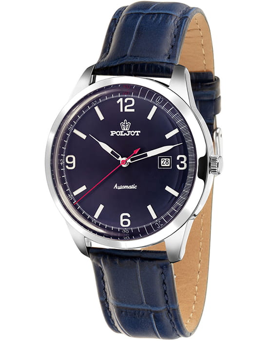 Poljot 8215.581018 — классические механические мужские часы с автоподзаводом, сочетающие традиции отечественного часового производства и лаконичный современный стиль. Корпус из нержавеющей стали подчёркивает надёжность и сдержанную элегантность модели, а глубокий циферблат с минималистичной разметкой, стрелки и метки с люминесцентным покрытиемЛюминесцентное покрытиеПозволяет считывать показания времени в темноте. Производители наносят на стрелки, часовые индексы, безель или поверхность циферблата светонакопительный состав, дающий холодное свечение., аккуратным окном даты и секундным акцентом придаёт образу динамичность. Механизм с автоподзаводом обеспечивает стабильную работу и плавный ход стрелок, подчёркивая инженерную точность исполнения. Прочное минеральное стеклоМинеральное стеклоМинеральное стекло представляет собой искусственно выращенный минерал кварца. Такое стекло отличается особой устойчивостью к повреждениям и царапинам. Уступает по некоторым качествам сапфировому стеклу. защищает циферблат, а ремешок из натуральной кожи с классической текстурой крокодила обеспечивает комфорт и благородный внешний вид. Poljot — воплощение надёжности, традиций и мужской элегантности, созданное для тех, кто ценит качество и уверенность в каждой детали.