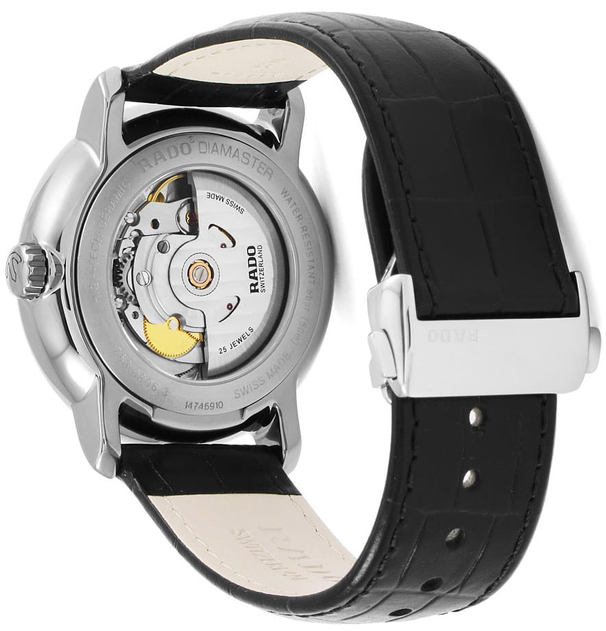 Мужские механические швейцарские часы Rado Diamaster R14806206, механический механизм (автоматический калибр) с высокой точностью. Сапфировое стекло устойчивое к появлению царапин, обладающее высокой прозрачностью. Класс водозащиты: 50 метров, позволит защитить корпус от случайных брызг или капель дождя. Корпус часов изготовлен из керамики, цвета.