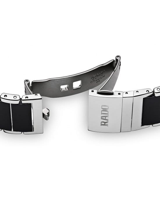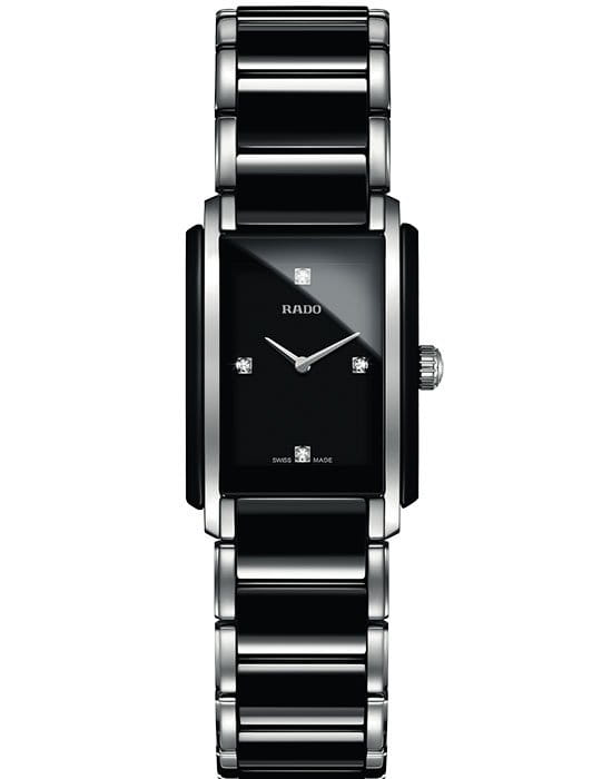 Наручным часам в чёрно-серебристом оформлении присущ роскошный стиль, изысканности добавляют 4 бриллианта в 0,026 карат, устоять перед их сиянием просто невозможно. Оригинальный браслет имеет высокопрочные вставки из высокотехнологичной керамикиВысокотехнологичная керамикаИнновационный запатентованный Rado материал с гладкой или матовой поверхностью. Керамика за счёт кристаллической структуры обладает повышенной устойчивостью от возникновения царапин. Материал способен принимать температуру тела человека, обеспечивая невероятный комфорт при ношении.. Модель комплектуется кварцевым механизмом ETA 976.001 с высокой точностью хода. Сапфировое стекло противостоит образованию царапин. Водостойкость 50 метров. Габариты: 22,7 x 33,1 x 6,5 мм.