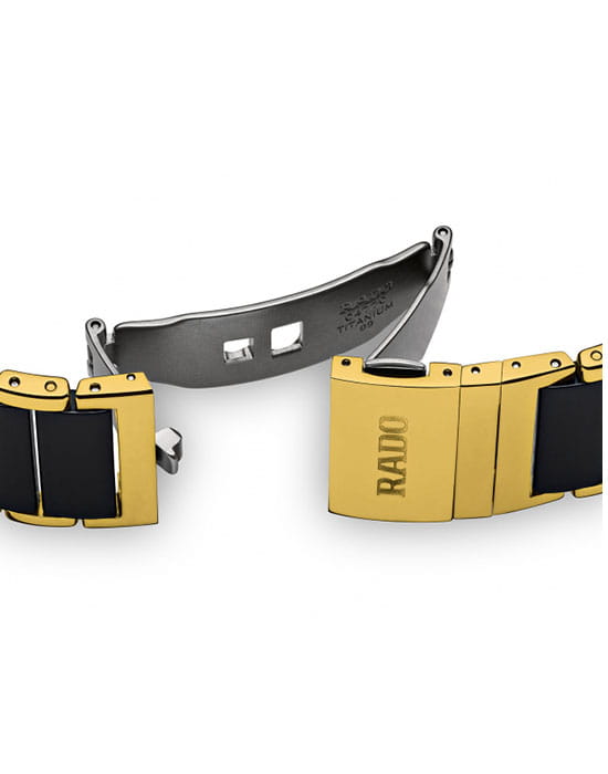 Лаконичный и сдержанный аксессуар точно понравится приверженцам классического стиля, минималистичный циферблат отличается удлинёнными часовыми индексами. Оригинально смотрится сочетание нержавеющей стали 316L и высокотехнологичной керамикиВысокотехнологичная керамикаИнновационный запатентованный Rado материал с гладкой или матовой поверхностью. Керамика за счёт кристаллической структуры обладает повышенной устойчивостью от возникновения царапин. Материал способен принимать температуру тела человека, обеспечивая невероятный комфорт при ношении.. Кварцевый механизм ETA 976.001 с высокой точностью хода. Стекло из сапфира. Водозащита 5 бар. PVD-покрытиеPVDУльтратонкое покрытие наносится в технике вакуумного напыления, сочетает в себе нитрид титана особой прочности со слоем золота или оксида хрома. Несёт в себе декоративную или защитную функцию. золотистого цвета, устойчивое к истиранию. Габариты: 33 x 23 x 6,5 мм.