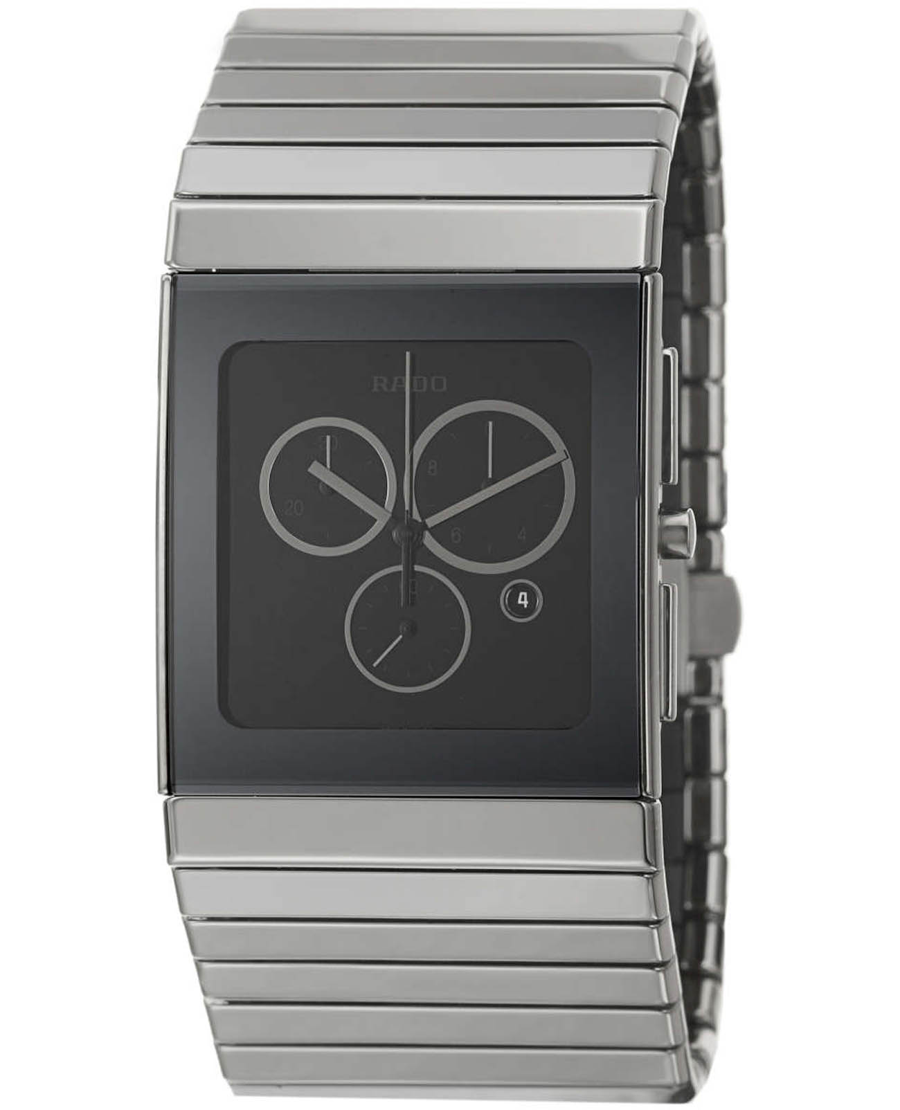 Мужские швейцарские наручные часы- хронографХронографФункция позволяет измерять отрезки времени с особой точностью: часы, минуты, секунды. Верным признаком хронографа является наличие на циферблате 3 дополнительных окошек-счётчиков. Rado Ceramica R21824152, кварцевый механизм с высокой точностью. Сапфировое стеклоСапфировое стеклоПрочный и надёжный материал из кристалла сапфира синтетического происхождения, характеризующийся особой твёрдостью и устойчивостью к царапинам и повреждениям. устойчивое к появлению царапин, обладающее высокой прозрачностью. Класс водозащиты: 30 метров, позволит защитить корпус от случайных брызг или капель дождя. Браслет из высокотехнологичной плазменной керамикиВысокотехнологичная плазменная керамикаИнновационный материал, технология запатентована. Выплавление керамики осуществляется в печи при 20 000 °C, белоснежный материал под воздействием ультравысокой температуры приобретает уникальный блеск, присущий металлам. на раскладной застёжкеРаскладная застёжкаТакой тип застёжки используется только на браслетах из металла. Она никогда не раскрывается полностью, происходит разделение на 2 и более частей. Раскладывающая застёжка снизит вероятность потери часов к минимуму..