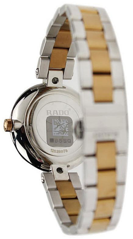 Швейцарские женские часы Rado Coupole R22850703, кварцевый механизм с высокой точностью. Сапфировое стеклоСапфировое стеклоПрочный и надёжный материал из кристалла сапфира синтетического происхождения, характеризующийся особой твёрдостью и устойчивостью к царапинам и повреждениям. устойчивое к появлению царапин, обладающее высокой прозрачностью. Корпус часов изготовлен из нержавеющей стали. Класс водозащиты: 50 метров, позволит защитить корпус от случайных брызг или капель дождя. Стальной браслет с частичным PVD-покрытиемPVDУльтратонкое покрытие наносится в технике вакуумного напыления, сочетает в себе нитрид титана особой прочности со слоем золота или оксида хрома. Несёт в себе декоративную или защитную функцию. на раскладной застёжкеРаскладная застёжкаТакой тип застёжки используется только на браслетах из металла. Она никогда не раскрывается полностью, происходит разделение на 2 и более частей. Раскладывающая застёжка снизит вероятность потери часов к минимуму.. Циферблат декорирован бриллиантами.