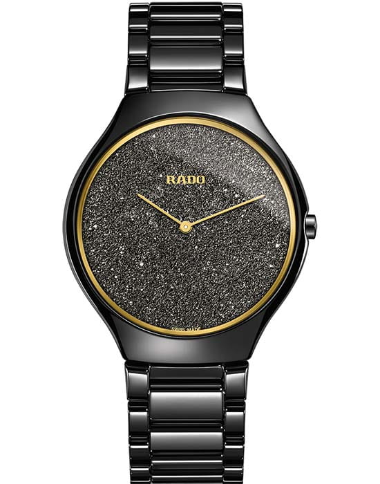Премиальный аксессуар отличается оригинальным дизайном циферблата, имеющего мерцающую зерненую структуру. Часы станут настоящим украшением вашего запястья и помогут всегда находиться в центре внимания. Швейцарский кварцевый калибр ETA 282.001 (толщина – 1 мм). Моноблочный корпус и браслет из высокотехнологичной керамикиВысокотехнологичная керамикаИнновационный запатентованный Rado материал с гладкой или матовой поверхностью. Керамика за счёт кристаллической структуры обладает повышенной устойчивостью от возникновения царапин. Материал способен принимать температуру тела человека, обеспечивая невероятный комфорт при ношении.. Водонепроницаемость 3 бар. Сапфировое стекло с антибликовым покрытием. . Диаметр корпуса: 39 мм.