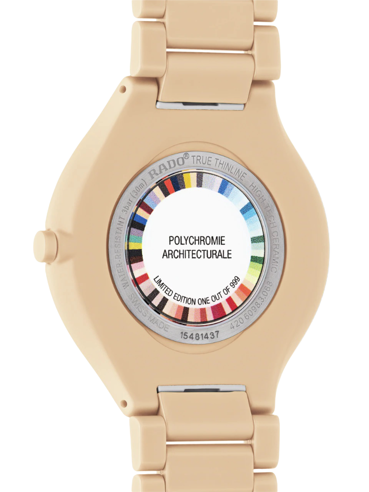 Швейцарские часы из лимитированной серии 999 экземпляров Rado True Thinline Le Corbusier R27097672 , кварцевый механизм с высокой точностью. Сапфировое стекло устойчивое к появлению царапин, обладающее высокой прозрачностью. Класс водозащиты: 30 метров, позволит защитить корпус от случайных брызг или капель дождя. Корпус часов изготовлен из керамики, цвета.