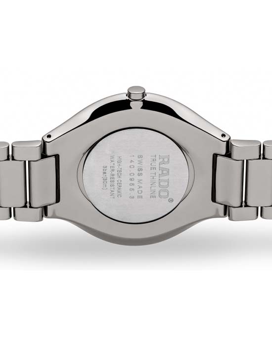Швейцарские кварцевые часы Rado True Thinline R27955122. Сапфировое стеклоСапфировое стеклоПрочный и надёжный материал из кристалла сапфира синтетического происхождения, характеризующийся особой твёрдостью и устойчивостью к царапинам и повреждениям. устойчивое к мелким механическим повреждениям. Корпус изготовлен из высокотехнологичной керамикиВысокотехнологичная керамикаИнновационный запатентованный Rado материал с гладкой или матовой поверхностью. Керамика за счёт кристаллической структуры обладает повышенной устойчивостью от возникновения царапин. Материал способен принимать температуру тела человека, обеспечивая невероятный комфорт при ношении.. Класс водозащиты: 30 метров, позволит защитить корпус от случайных брызг или капель дождя. Браслет из керамики на застёжке-бабочкеЗастёжка "бабочка"Такой вид застёжки дополняется предохранителями, помогающими избежать случайного раскрытия браслета. Обладают изящным исполнением. .