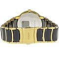 Традиционный круглый циферблат чёрного цвета с золотистыми стрелками и метками имеет узор «солнечные лучи», лаконичное исполнение делает аксессуар универсальным вариантом для любого события. Корпус и браслет выполнены из хирургической стали 316L, браслет сделан в сочетании с высокотехнологичной керамикойВысокотехнологичная керамикаИнновационный запатентованный Rado материал с гладкой или матовой поверхностью. Керамика за счёт кристаллической структуры обладает повышенной устойчивостью от возникновения царапин. Материал способен принимать температуру тела человека, обеспечивая невероятный комфорт при ношении.. В основе работы находится кварцевый механизм ETA 955.112 с высокой точностью хода. Сапфировое стекло устойчиво к образованию царапин на поверхности. Сохранение водонепроницаемости при давлении до 3 бар. PVD-покрытиеPVDУльтратонкое покрытие наносится в технике вакуумного напыления, сочетает в себе нитрид титана особой прочности со слоем золота или оксида хрома. Несёт в себе декоративную или защитную функцию. цвета «жёлтое золото». Отображение даты. Диаметр корпуса: 38 мм.