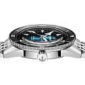 Captain Cook Automatic — это гармоничное сочетание точности и стиля, созданное для тех, кто ценит надёжность в любых условиях. Полированный корпус диаметром 39 мм выполнен из нержавеющей стали и дополнен вращающимся безелем из того же материала с чёрной керамической вставкой и белыми маркерами. Треугольный индекс в положении 12 часов выделен слоем люминесцентного покрытияЛюминесцентное покрытиеПозволяет считывать показания времени в темноте. Производители наносят на стрелки, часовые индексы, безель или поверхность циферблата светонакопительный состав, дающий холодное свечение. Super-LumiNova®, что обеспечивает отличную читаемость даже в темноте. Часы защищены сапфировым стекломСапфировое стеклоПрочный и надёжный материал из кристалла сапфира синтетического происхождения, характеризующийся особой твёрдостью и устойчивостью к царапинам и повреждениям. коробчатой формы, изготовленным при температуре свыше 2000 °C и покрытым антибликовым слоем с обеих сторон. Это обеспечивает исключительную прозрачность и устойчивость к царапинам — по твёрдости оно уступает только алмазу. Сердце модели — калибр R763 с автоподзаводом, разработанный для максимальной надёжности. Механизм имеет 25 драгоценных камней, регулируется в пяти положениях и оснащён антимагнитной спиралью Nivachron™Nivachron™Специально разработанный инновационный сплав Nivachron™ повышает устойчивость часов к воздействию магнитных полей., повышающей стабильность хода. Запас хода составляет внушительные 80 часов, что делает часы идеальными для активного образа жизни. Циферблат с градиентом от чёрного к бирюзовому украшен индексами и стрелками из рутениевого цвета, покрытыми белым люминесцентным составом Super-LumiNova® для отличной читаемости в темноте. Окошко даты расположено в положении 3 часов, а на задней крышке выгравирован символический якорь — знак принадлежности к коллекции Captain Cook. Браслет в стиле «рисовые зёрна» выполнен из комбинированной стали с полированной и матовой отделкой и закрывается трёхсгибной застёжкой из нержавеющей стали, обеспечивающей комфорт и уверенную фиксацию на запястье. Часы водонепроницаемы до 300 метров (), что делает их готовыми к любым приключениям — будь то подводное плавание или деловая встреча. Captain Cook Automatic сочетает в себе швейцарское мастерство, современные технологии и элегантный дизайн, становясь универсальным аксессуаром для любого случая.