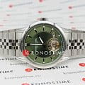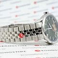 Циферблат оформлен по технологии Sunray (солнечные лучи) с уникальной спиральной отделкой. Накладные метки в виде штрихов и прямоугольные стрелки в стиле Baton добавляют строгий характер. Стрелки и метки имеют люминесцентное покрытиеЛюминесцентное покрытиеПозволяет считывать показания времени в темноте. Производители наносят на стрелки, часовые индексы, безель или поверхность циферблата светонакопительный состав, дающий холодное свечение., которое светится в темноте после небольшой зарядки на свету. Прозрачное окошко в положении 6 часов позволяет наблюдать за работой механизма часов.