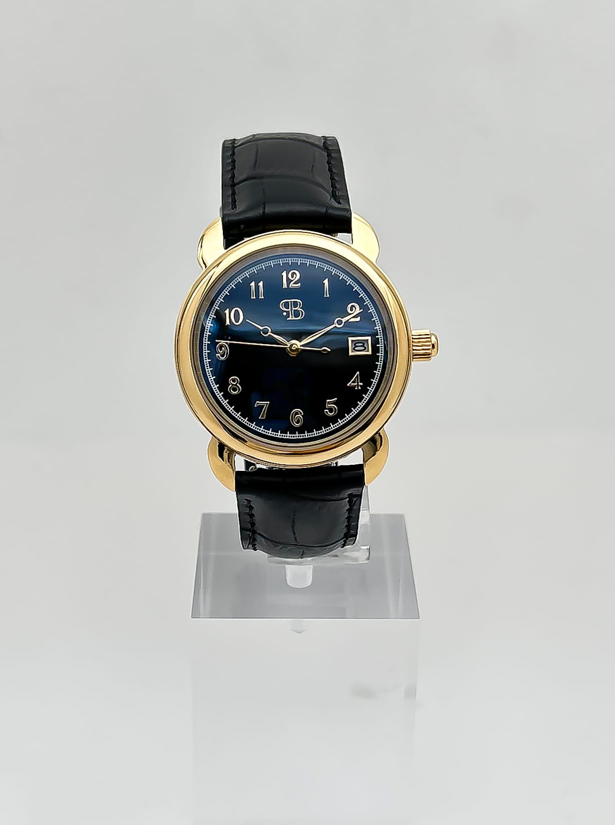 Стальной корпус круглой формы выполнен из нержавеющей стали с PVD-покрытиемPVDУльтратонкое покрытие наносится в технике вакуумного напыления, сочетает в себе нитрид титана особой прочности со слоем золота или оксида хрома. Несёт в себе декоративную или защитную функцию., что придает часам прочность и долговечность. Циферблат защищен закаленным сапфировым стекломСапфировое стеклоПрочный и надёжный материал из кристалла сапфира синтетического происхождения, характеризующийся особой твёрдостью и устойчивостью к царапинам и повреждениям. с антибликовым покрытием, что предотвращает появление царапин и повреждений, а также обеспечивает четкую видимость даже при ярком освещении.