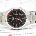 Наручные часы имеют чёрный циферблат с красной секундной стрелкой, дополненный узором в спортивном стиле. Компактная модель привлекает универсальным исполнением, будет хорошо смотреться с повседневной, деловой, спортивной одеждой. Аксессуар сделан из стали 316L, серебристый металл устойчив к деформации, повреждениям, коррозии. Минеральное стеклоМинеральное стеклоМинеральное стекло представляет собой искусственно выращенный минерал кварца. Такое стекло отличается особой устойчивостью к повреждениям и царапинам. Уступает по некоторым качествам сапфировому стеклу. устойчивое к мелким механическим повреждениям. Внутри надёжного корпуса находится японский автоматический механизм Seiko 7S26, характеризующийся запасом хода до 40 часов. Наблюдать за его работой можно через прозрачную заднюю крышку. Стрелки имеют люминесцентную подсветкуЛюминесцентное покрытиеПозволяет считывать показания времени в темноте. Производители наносят на стрелки, часовые индексы, безель или поверхность циферблата светонакопительный состав, дающий холодное свечение.. Диаметр корпуса: 36 мм. Окошки дня недели и даты находятся в положении 3 часа.