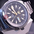 Современные японские наручные мужские часы. Круглый корпус и браслет часов выполнены из высокопрочной стали с антикоррозийными свойствами. Темный фон циферблата и стальные элементы дизайна. Водонепроницаемость 5 ATM. Минеральное стекло Hardlex, устойчивое к появлению царапин.