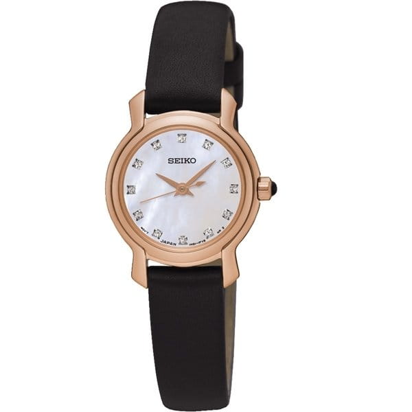 Классические наручные японские женские часы. Кварцевый механизм, калибр Seiko N01. Круглый корпус часов выполнен из стали с PVD покрытием. Перламутровый фон циферблата украшен кристаллами SWAROVSKI. Водонепроницаемость 5 ATM. Ремешок из натуральной кожи черного цвета. Минеральное стекло повышенной прочности Hardlex, устойчивое к появлению царапин. Современный и роскошный аксессуар.