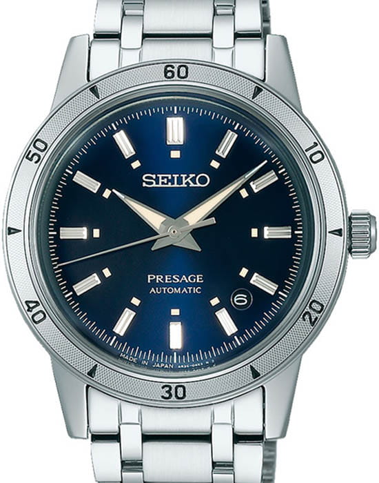Seiko Presage Style60’s SRPL07J1 — гармоничное сочетание винтажной эстетики 60-х годов и современных механических технологий, воплощённое в изысканной и универсальной форме. Корпус диаметром 39,5 мм выполнен из нержавеющей стали с сатинированной и полированной отделкой. Циферблат защищён изогнутым стеклом HardlexМинеральное стеклоМинеральное стекло представляет собой искусственно выращенный минерал кварца. Такое стекло отличается особой устойчивостью к повреждениям и царапинам. Уступает по некоторым качествам сапфировому стеклу., устойчивым к повседневным повреждениям. Циферблат оформлен в минималистичном стиле: накладные серебристые индексы и стрелки с люминесцентным покрытиемЛюминесцентное покрытиеПозволяет считывать показания времени в темноте. Производители наносят на стрелки, часовые индексы, безель или поверхность циферблата светонакопительный состав, дающий холодное свечение. обеспечивают хорошую читаемость. Окно даты расположено на позиции «3 часа». Внутри установлен автоматический механизм Seiko 4R35 с возможностью ручного подзавода. Механизм на 23 камнях работает с частотой 21 600 полуколебаний в час и обеспечивает запас хода около 41 часа. Модель оснащена браслетом из нержавеющей стали с раскладной застёжкойРаскладная застёжкаТакой тип застёжки используется только на браслетах из металла. Она никогда не раскрывается полностью, происходит разделение на 2 и более частей. Раскладывающая застёжка снизит вероятность потери часов к минимуму., обеспечивающей удобство и надёжность при повседневной носке. Водонепроницаемость 50 метров делает SRPL07J1 отличным выбором для повседневного стиля и формальных образов. Presage Style60’s — это уважение к традициям и современный подход к классике японского часового искусства.